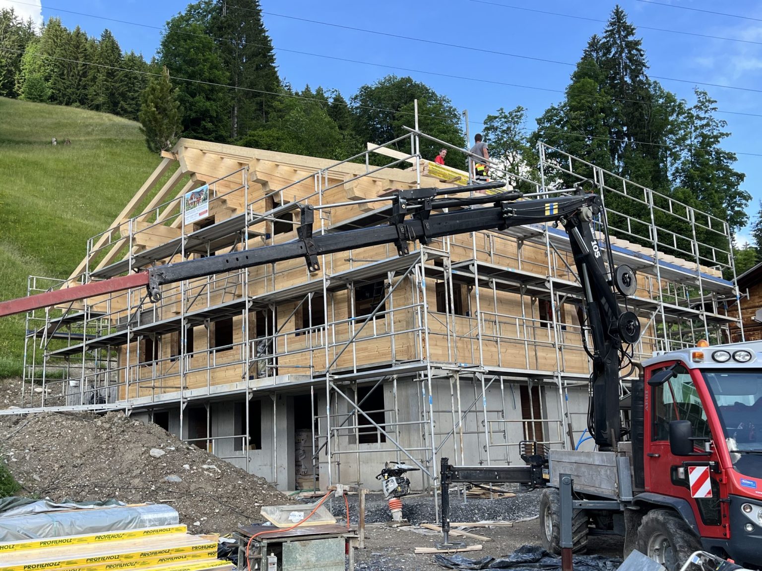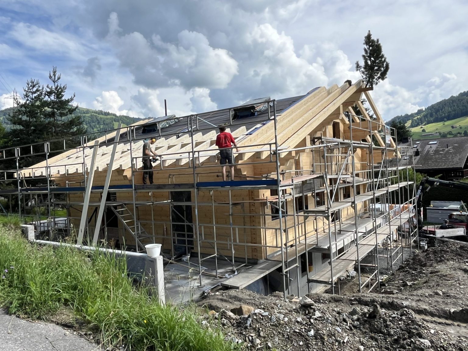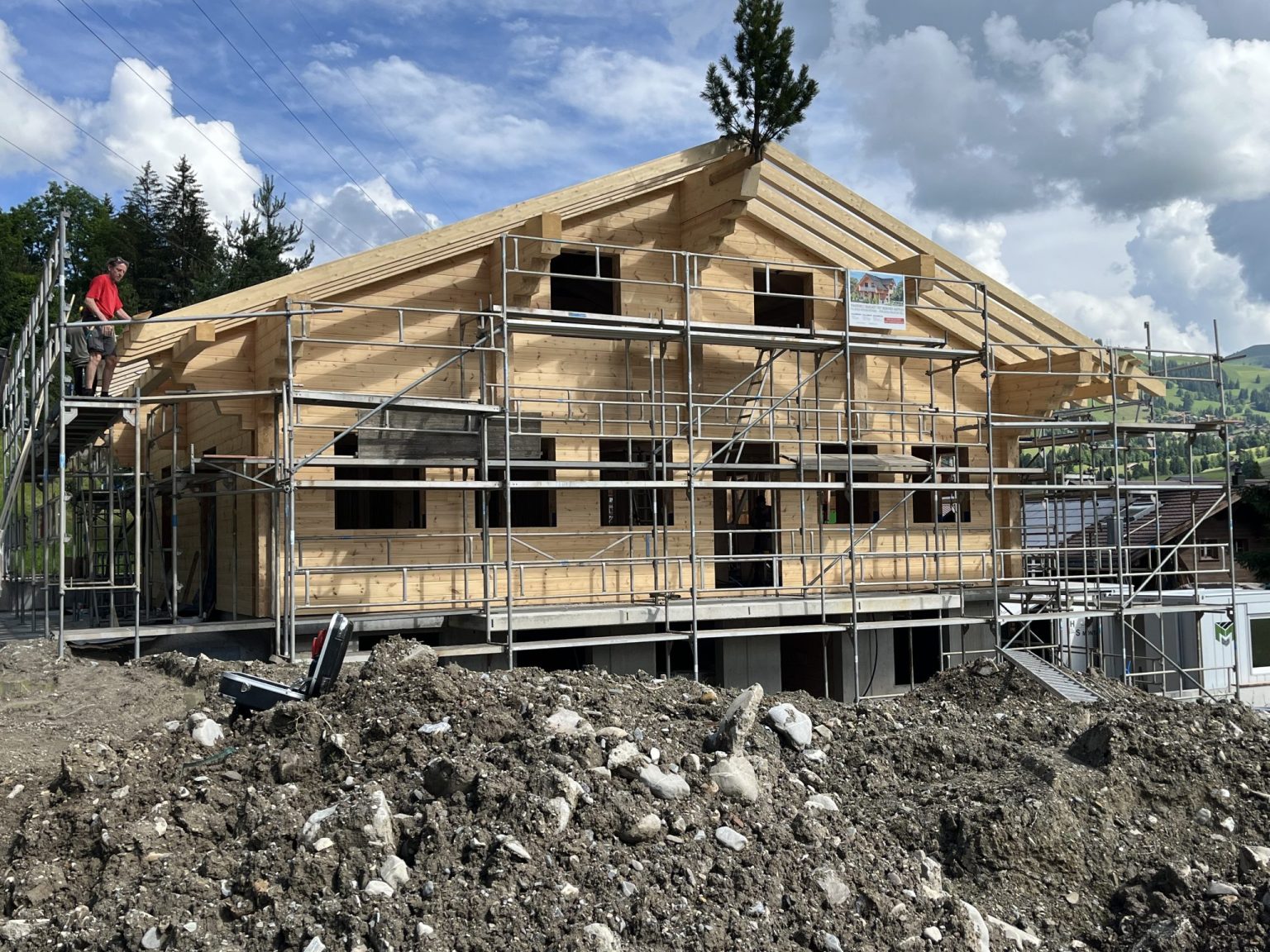 In schön gelegener Ortsrandlage entsteht dieses stattliche Blockhaus Chalet mit sehr hohem Maß an Eigenleistung und Eigenorganisation durch den jungen, engagierten Bauherren, "Königsklasse 27cm" Massivholzwände, Sichtdachstuhl.