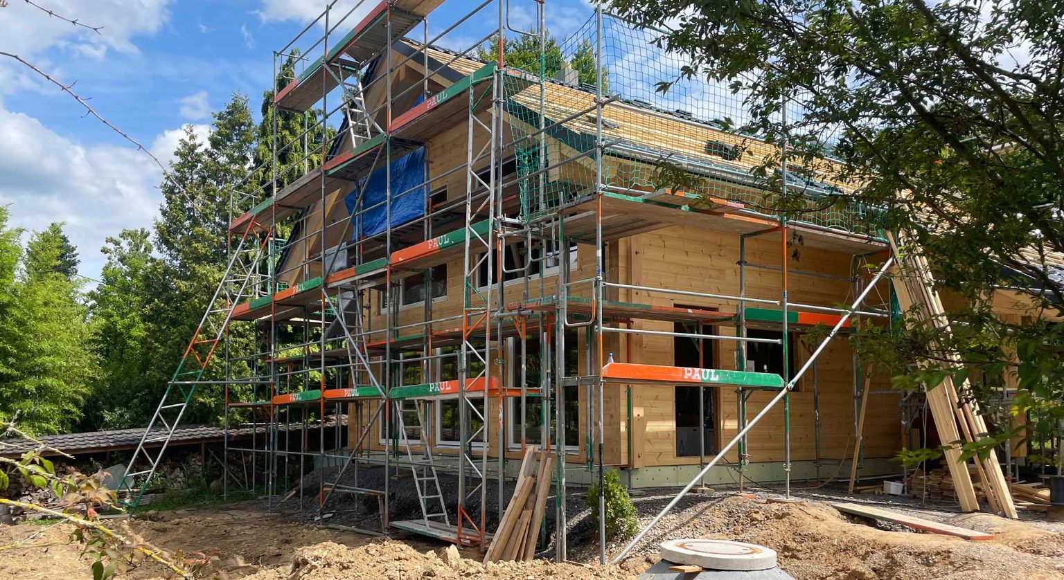 Blockhaus für seine (Schwieger-)Kinder selbst – er ist Schreiner. Natürlich hilft die Familie mit und auch der Innenausbau wird in Eigenleistung erbracht. Das Baupaar wählt Fullwood in erster Linie wegen der qualitativ hochwertigen Blockwand aus, aber auch weil der