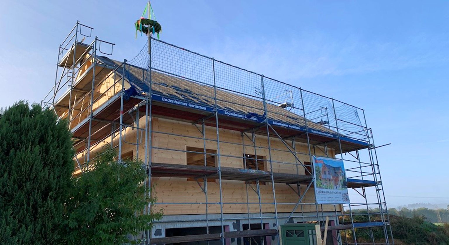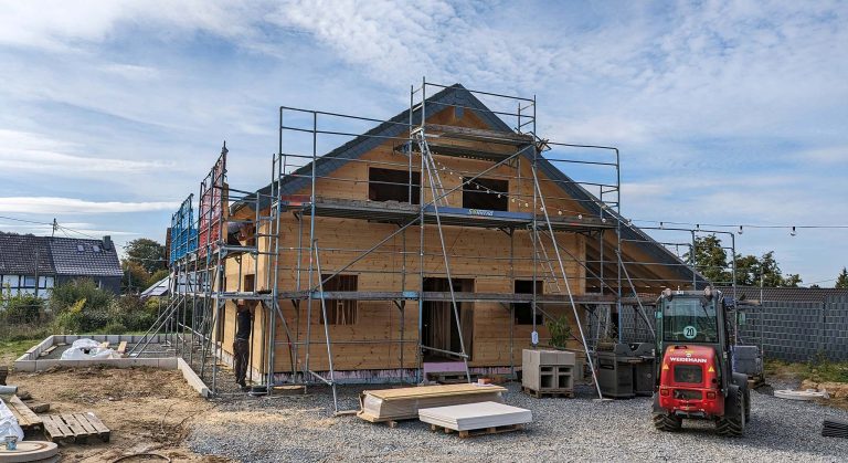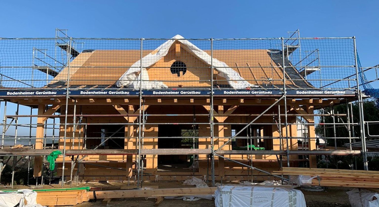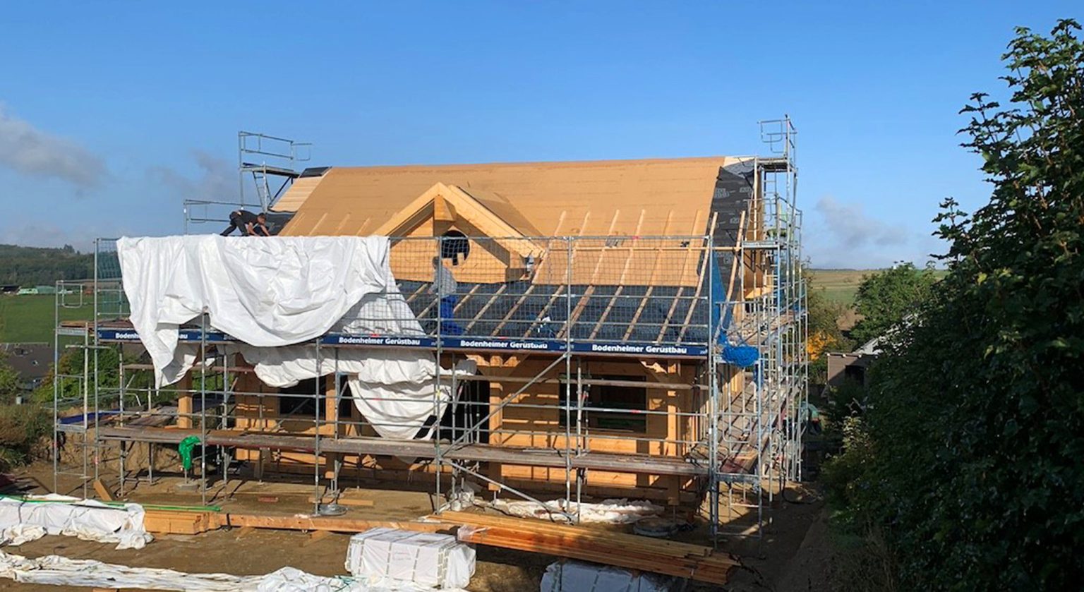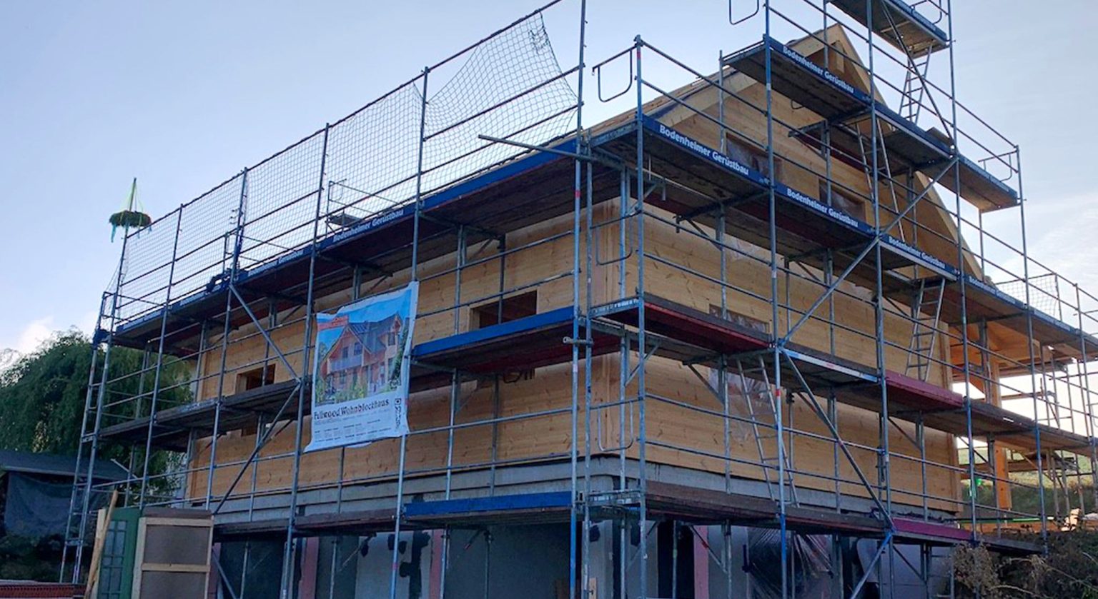 Ein junges Erzieherpaar baut hier sein eigenes Blockhaus in nachhaltiger, ökologischer Bauweise ganz nach den eigenen Ideen und Bedürfnissen. Die hochwertigen Kombiblockwände werden auf einem Fertigkeller montiert, wo sich später eine Töpferwerkstatt für Sie und ein Musik-Proberaum für Ihn befinden werden.