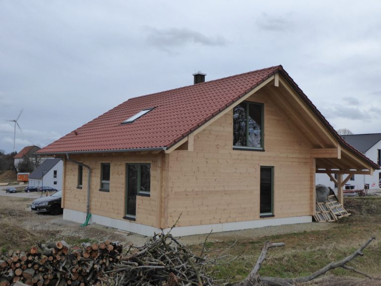 Blockhaus mit 1,5 Geschossen auf Bodenplatte mit 9er Blockwand