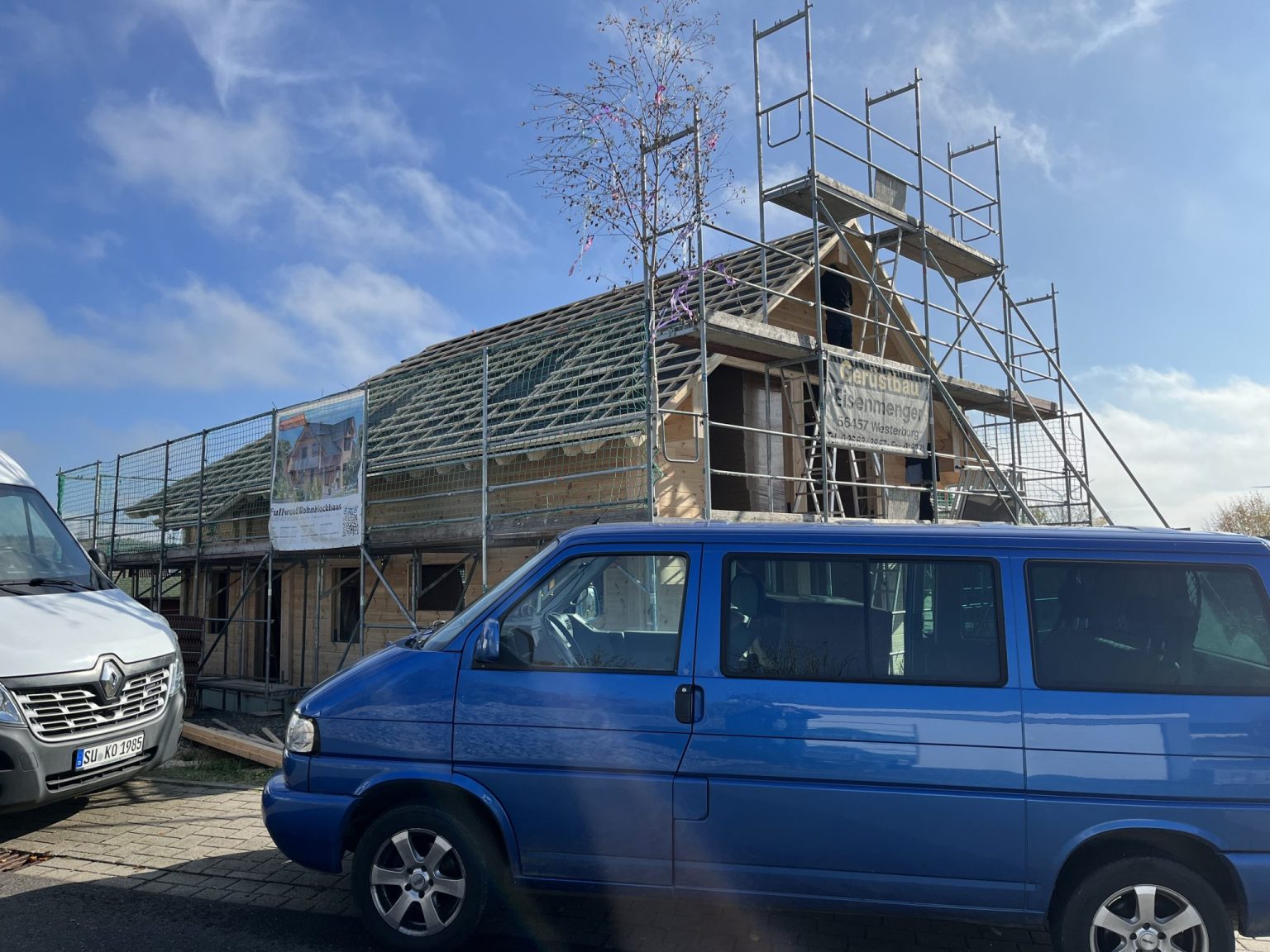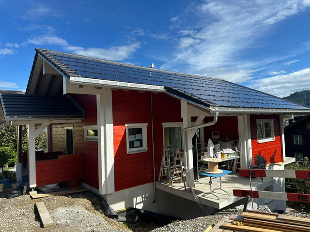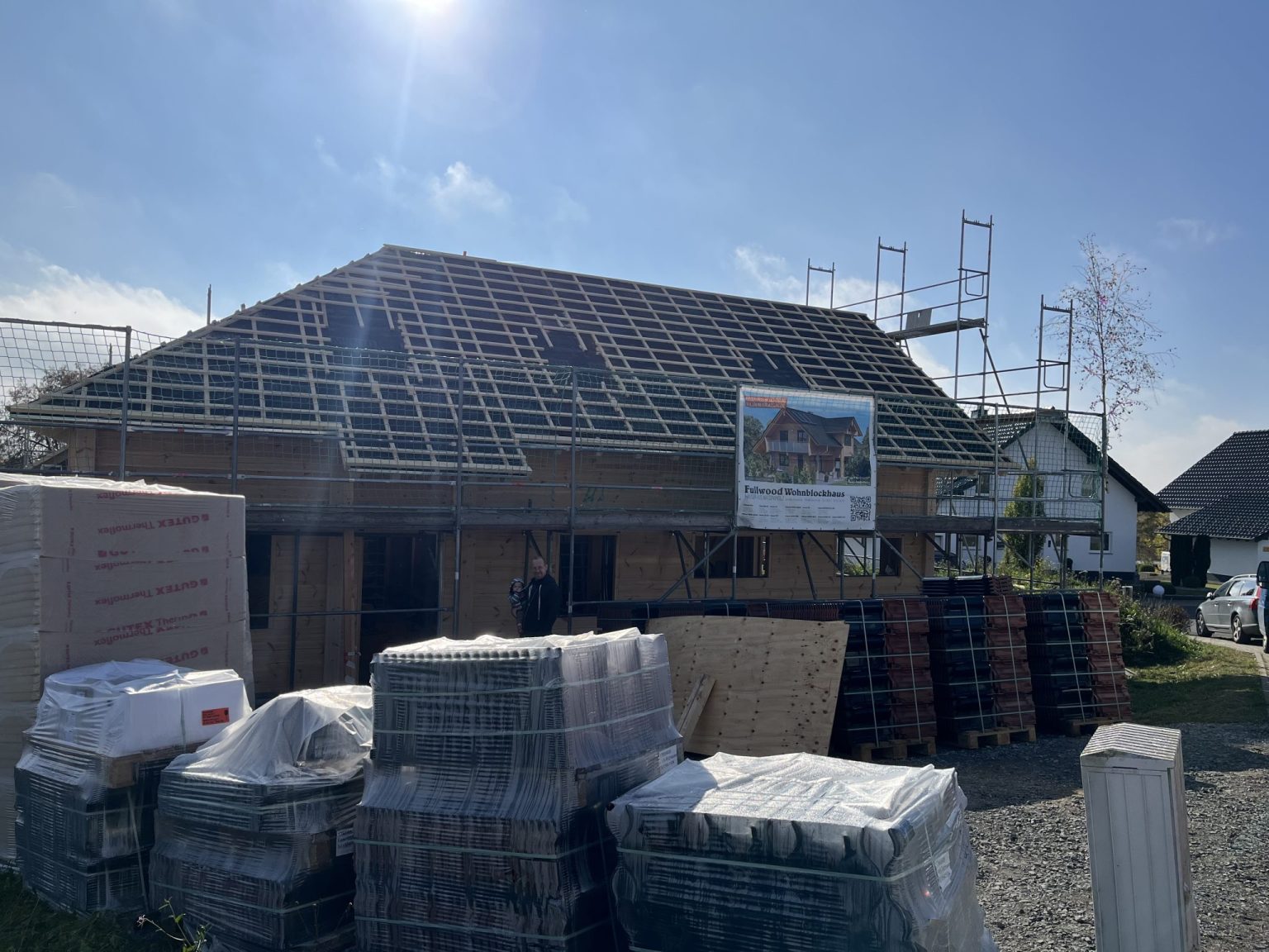 Blockhaus wird komplett mit der 9er Kombiblock-Wand in Richtmeistermontage und viel Eigenleistung im Innenausbau umgesetzt.