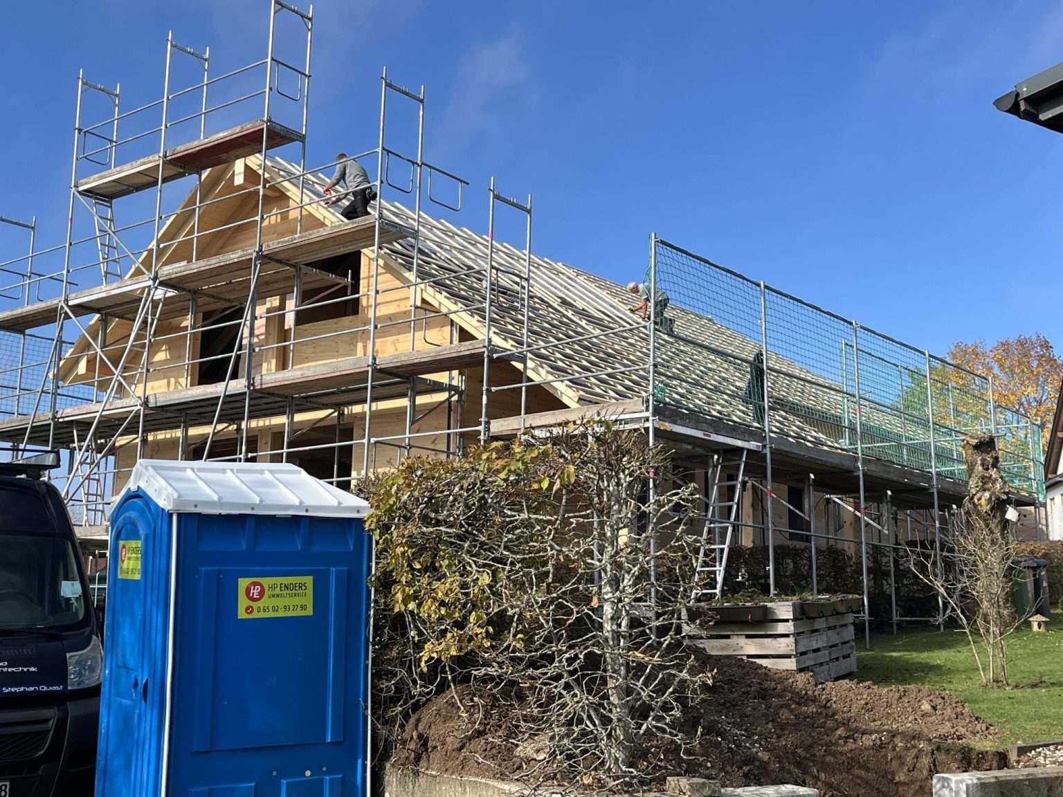 Eine Tochter baut zusammen mit ihren Eltern eine Praxis für Physiotherapie (Tochter) und eine Wohneinheit (Eltern) nebeneinander. Das