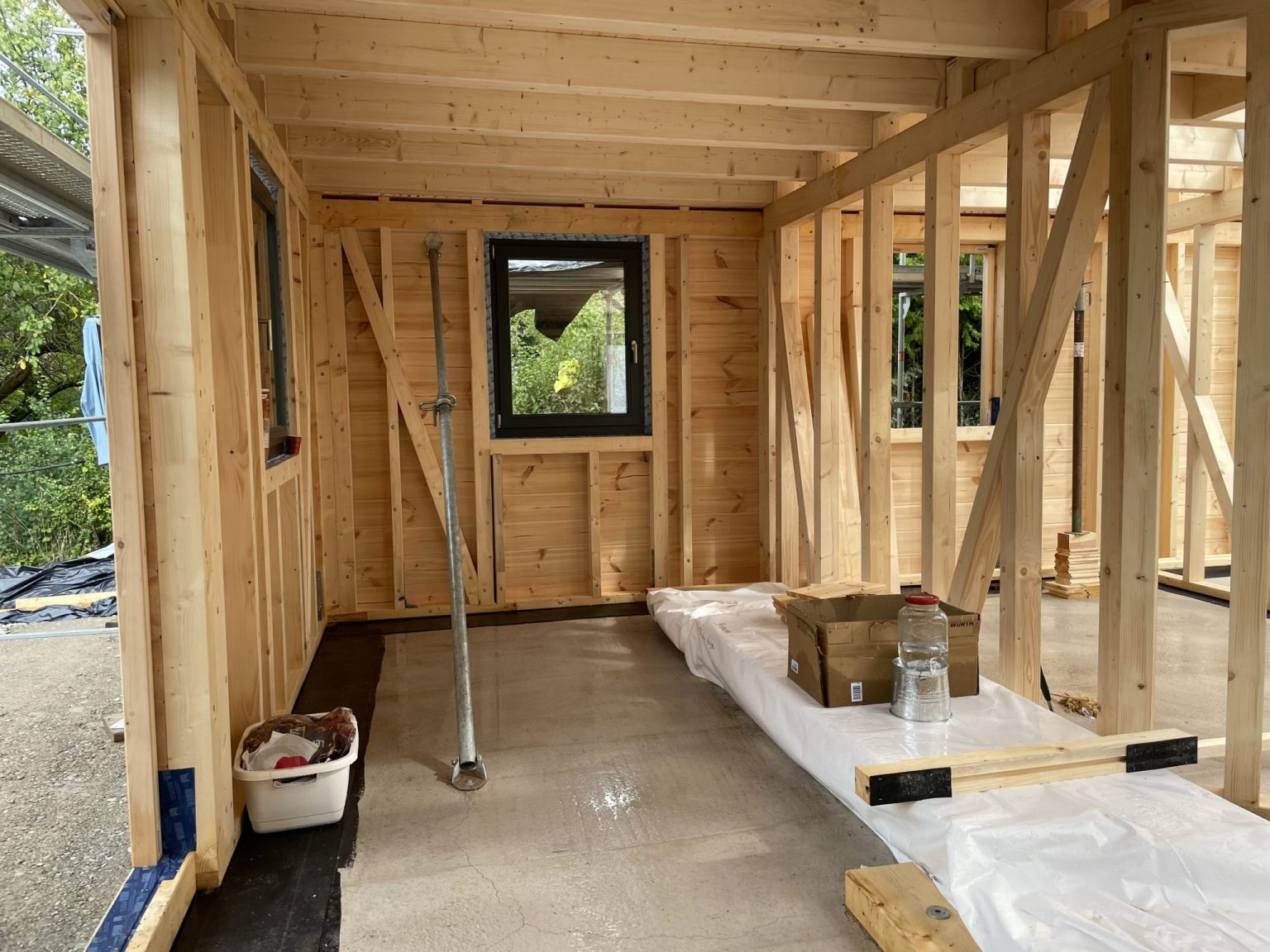 • Bauweise: Bungalow mit Pultdach und 9er Kombiblockwand für 1. Person, teilweise mit 4cm Zwischendecke (Lagerraum) und Blechdach inkl. Vollschalung
