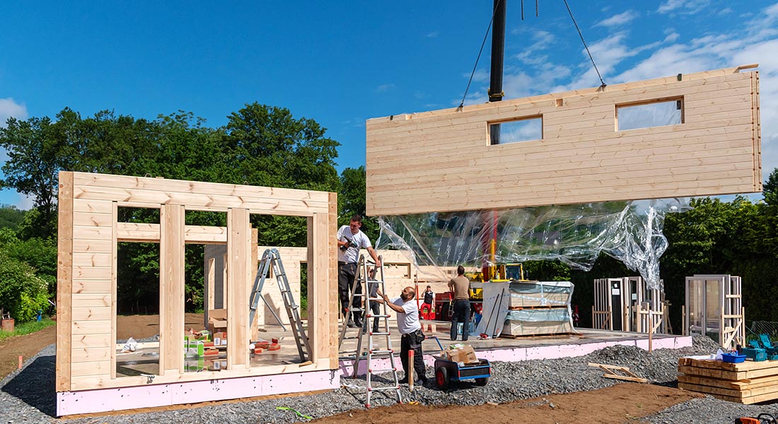 Blockhaus mit moderner Brettstapeldecke