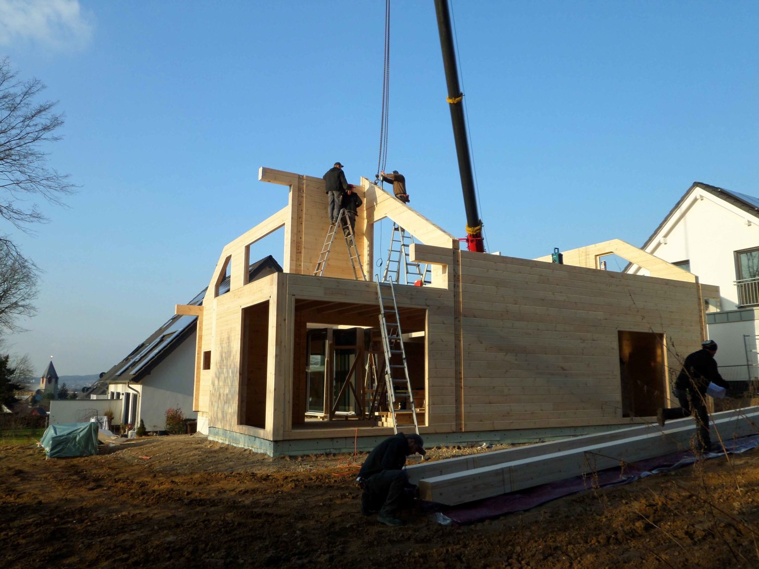 Ein neues Blockhaus von Fullwood wird im Rhein-Sieg-Kreis gebaut. Von der Beratung über die Planung bis zur Montage verlässt sich der Bauherr ganz auf das Profiteam von Fullwood. Dementsprechend geht der Baufortschritt seines Blockhauses besonders schnell vonstatten. Der Bauherr kommt täglich zur Baustelle seines Blockhauses und staunt immer wieder über die Entwicklung vor Ort. Schön, wenn man seinem Blockhaus beim Entstehen und "wachsen" zusehen kann. Die Gastherme und die Lüftungsanlage installiert der Bauherr selbst, ansonsten überlässt er auch den Ausbau Fachfirmen. Geniessen wird der zukünftige Hausherr und seine Familie das Wohnen und Leben in ihrem echten Blockhaus von Fullwood aber garantiert zu 100 Prozent selbst - da ist die Familie ganz Profi!