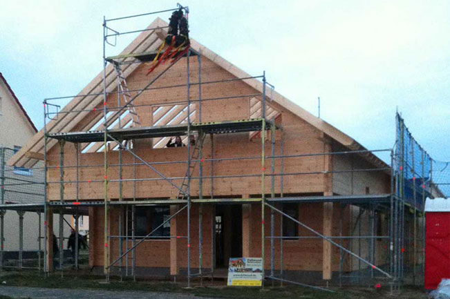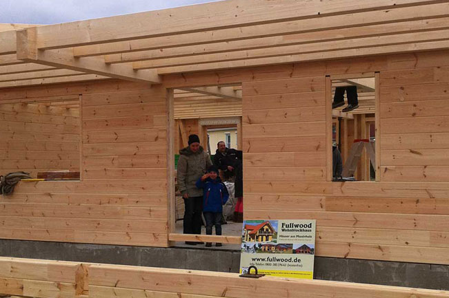 Das Blockhaus ist ganz nach den Bedürfnissen einer vierköpfigen Familie ausgerichtet, so dass alle Hausbewohner darin glücklich werden können und der Alltag reibungslos klappen kann. Genau so reibungslos, wie die Hausmontage selbst: Ein Richtmeister von Fullwood Wohnblockhaus ist vier Tage auf der Baustelle, um zusammen mit den Bauherren die fertigen Wandelemente (aus 20 cm dicken Kiefernholz) zu montieren. Dabei leitet er die Bauherren nicht nur an, sondern arbeitet ihnen auch vor. Zwischenzeitlich hat der Hausherr zusammen mit einem Freund auch schon das Dach gedeckt - an nur einem einzigen Tag. Bisher läuft auf der Baustelle alles glatt und man liegt gut in der Zeit; auch mit der Ordnung und Sauberkeit auf der Baustelle sind alle hoch zufrieden.
