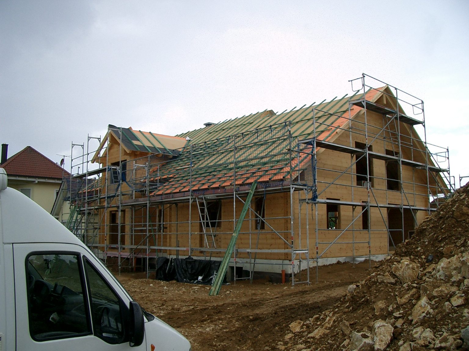 Wie bei Fullwood üblich, wird auch dieses Blockhaus zuerst exakt nach den Bedürfnissen und der Vorstellung der Bauherren geplant und statisch berechnet. Nach diesem Plan werden dann in der Werkstatt passgenaue Wandelemente gefertigt, teils mit Computer gesteuerten Maschinen, teils in Handarbeit. Diese Massivholzwände werden danach auf einen LKW geladen, der sie termingetreu zum Bauplatz bringt. Dort warten neben den aufgeregten Bauherren schon der Kran und das Montage-Team, und nach einmaligem "in-die-Hände-Spucken" kann der Hausaufbau losgehen. Nach circa 3 Tagen steht das Blockhaus schon im Rohbau fertig da, inklusive Dachstuhl. Auch das Dach ist schnell gedeckt und zuletzt erfolgt der Innenausbau. Hierfür wird die längste Zeit des Vorhabens "Ich baue ein Blockhaus mit Fullwood" benötigt. Im Durchschnitt können die Bauherren schon nach 5 Monaten Bauzeit in ihr fertiges Blockhaus einziehen, der Spitzenrekord liegt sogar schon bei 3 Monaten ab Hauslieferung! Der Garten wird von den allermeisten Bauherren im Anschluss an den Hausbau angelegt, wobei es auch hier schon Ausnahmen gab, die ihr Blockhaus in den fertigen Garten stellten und nur noch die Terrasse pflastern mussten.