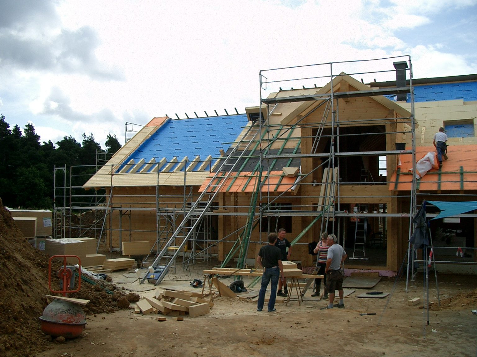 Auch in diesem Baustellenbeispiel freuen sich die Bauherren über den zügigen Baufortschritt und die eingehaltenen Zeitpläne. Man könnte fast sagen, dass das "sich wohlfühlen" nicht erst im eigenen Fullwood Wohnblockhaus beginnt, sondern schon bei der Planung und Vollmontage desselben.