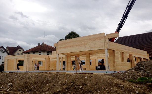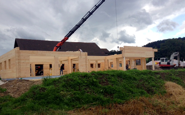 Die Baufamilie wählt für ihr Blockhaus die besonders dicke Massivholzwand mit einer Stärke von 27 cm anstatt der üblichen 20 cm. Ihre individuellen Vorstellungen müssen die Bauherren erst mit der Gemeinde abstimmen, bevor Fullwood die Wünsche technisch umsetzt und baut. Nun entsteht ein sehr großzügiges Blockhaus, das es - wie alle echten Blockhäuser von Fullwood - nur ein einziges Mal genau so gibt. Auf das offene Wohnen in ihrem Blockhaus Schweiz freut sich die Bauherrschaft schon sehr. Es wird auf zwei Ebenen stattfinden.