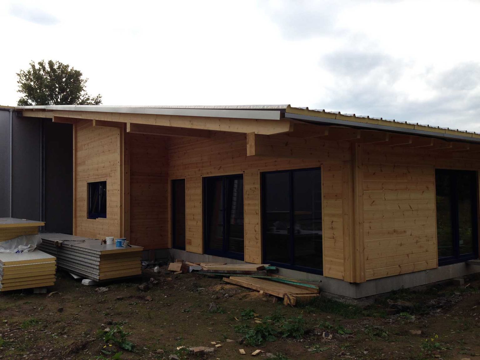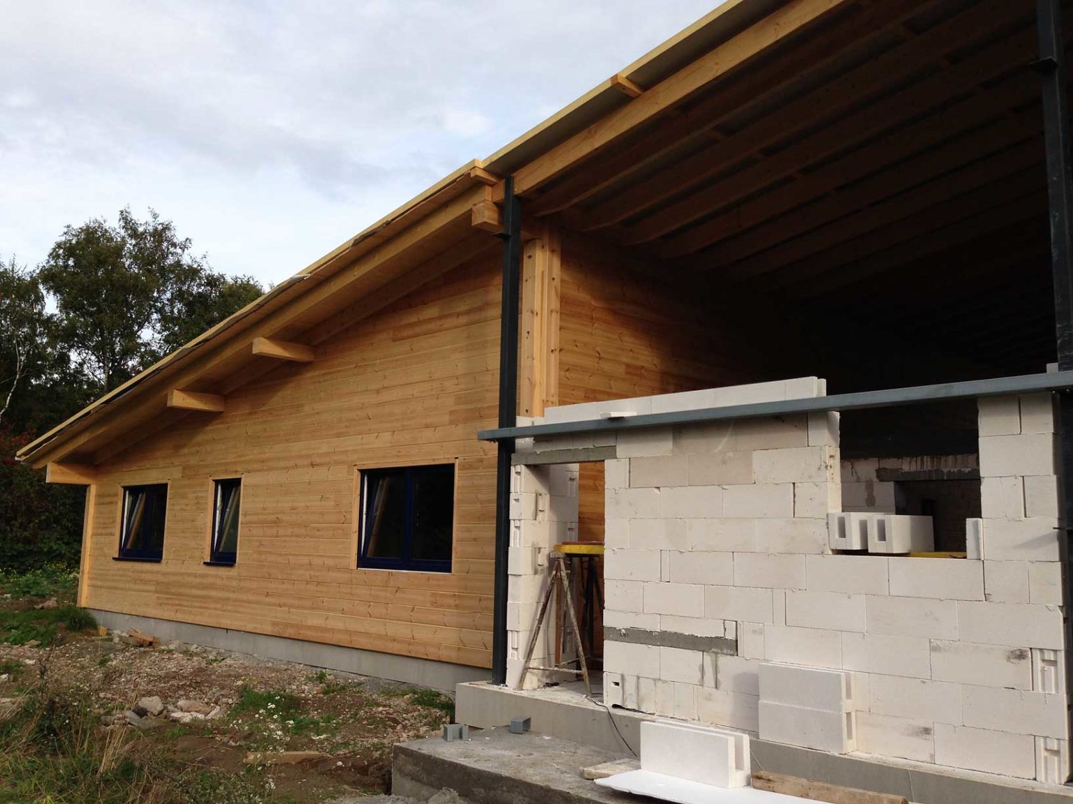 Zwei Wünsche werden wahr: Bei Arnsberg bauen die Besitzer einer Autowerkstatt ihr eingeschossiges Blockhaus an die ebenfalls neue Werkstatthalle an.