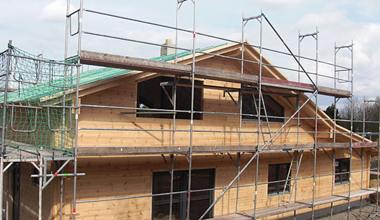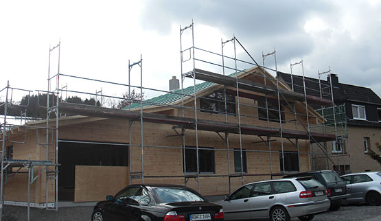 Nahe der Glörtalsperre entsteht dieses große Blockhaus mit Garagenanbau.