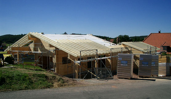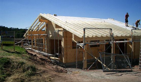 Nachdem der Bauherr in Zusammenarbeit mit Fullwood sein Blockhaus individuell geplant hat, befindet es sich jetzt in der "heißen" Bauphase.