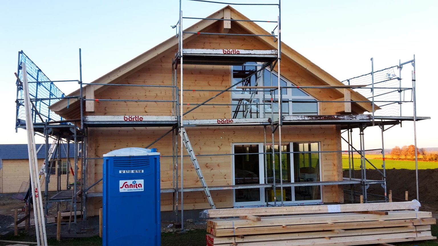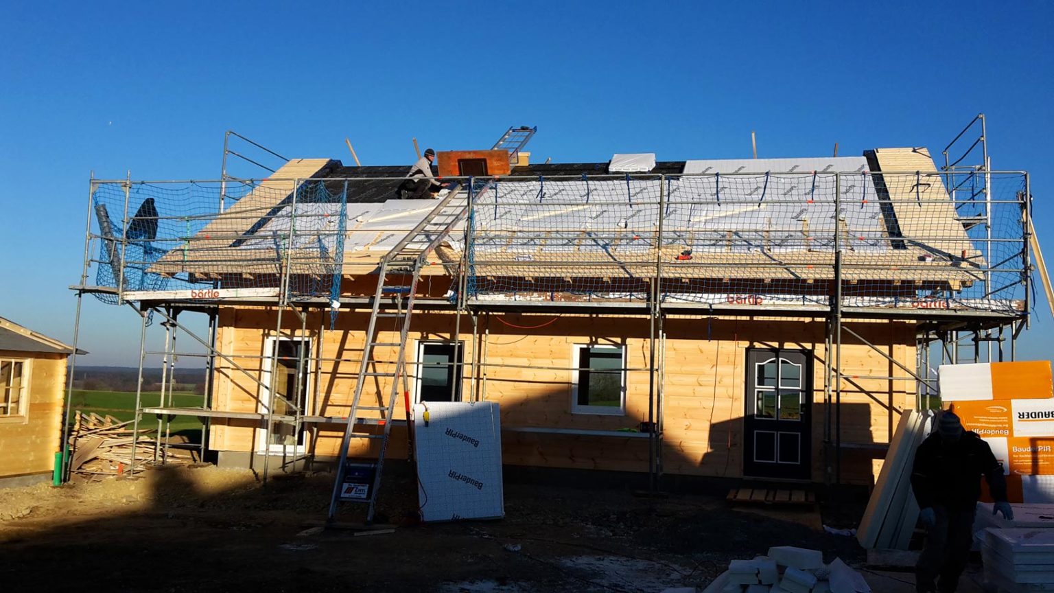 Zum einen sollen die massiven Blockwände aus Kiefernholz so wunderbar hell bleiben, wie sie sind (UV-Schutz-Anstrich und Schutzanstrich vor Vergrauung), zum anderen ist reichlich natürlicher Lichteinfall gewünscht, weshalb das Blockhaus große, bodentiefe Fenster erhält. Sogar das Satteldach bekommt eine riesige Fensterfläche, so dass das neue Blockhaus auch ein lichtdurchflutetes Dachgeschoss besitzt. Weiße Fensterrahmen unterstützen das helle Gesamtbild, ganz so, wie die Bauherren es mögen. Auch dieses Blockhaus ist ein schöner Beweis für die Individualität aller Fullwood Wohnblockhäuser.