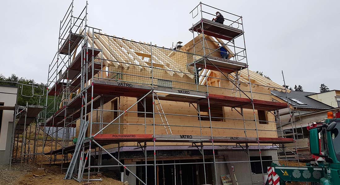 Mit sehr viel Eigenleistung geht der Hausbau vonatstten, deshalb war der Baubeginn in den großen Sommerferien. Das Besondere an diesem neuen Blockhaus ist - unter anderem - dass die massive, einschalige Blockwand von Fullwood mit der im Kern gedämmten "Kombiblockwand" von Fullwood kombiniert wird. So können die Bauherren das Innere ihres Blockhauses noch flexibler gestalten. Sämtliche Vorteile der Fullwood-Wandelemente und eines typischen Blockhauses von Fullwood bleiben natürlich erhalten!