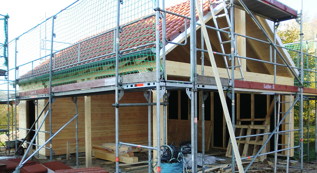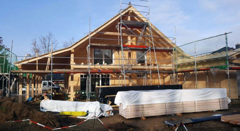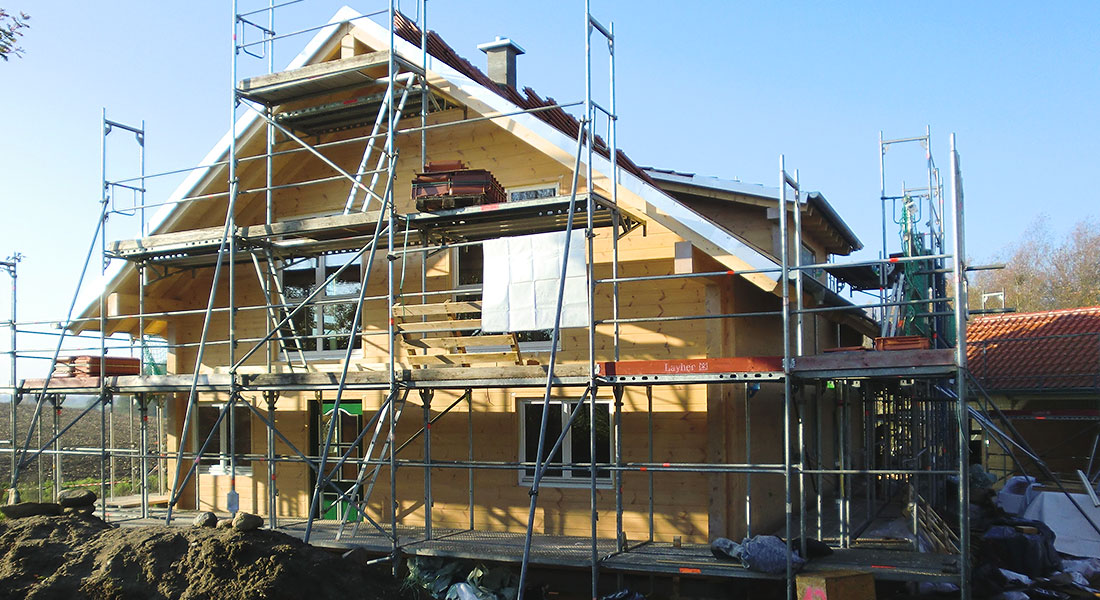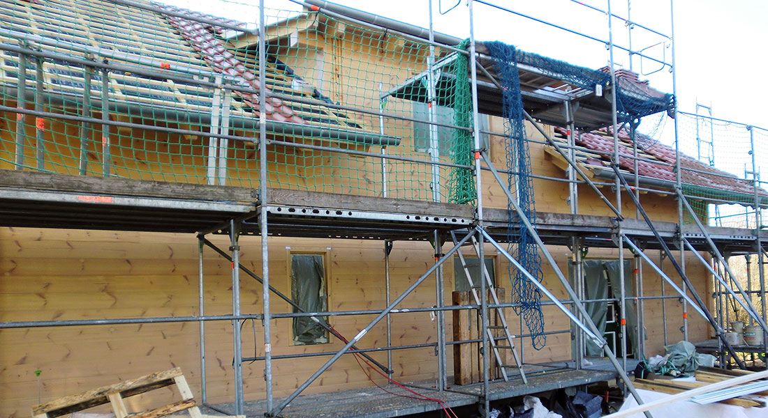 Wegen der Ruhe und der frischen Luft hat es die Baufamilie aufs Land in die Nähe von Schwerin und Lübeck verschlagen – beides werden sie auch in ihrem wohngesunden Blockhaus finden! Zusammen mit dem Richtmeister, der 10 Tage vor Ort ist, baut die Bauherrschaft ihr Blockhaus auf und bis auf Estricharbeiten und Haustechnik macht das Ehepaar mit Hilfe von Freunden und Familie sämtliche Ausbauarbeiten selbst. Das fleißige Baupaar richtet sogar eine eigene kleine Gästewohnung in ihrem neuen Blockhaus ein, damit auch Familie und Freunde aus der alten Heimat in den Genuss des Ostseeklimas kommen können.