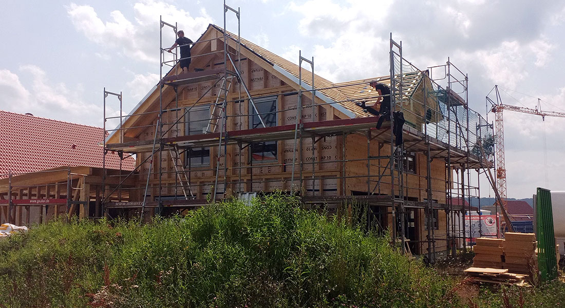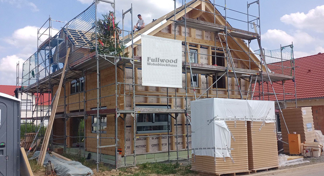 Die Bauherrschaft möchte unbedingt ein Blockhaus, darf von amtlicher Seite her aber außen keine Massivholzwände bauen. In solchen Fällen kann die Kombiblockwand einfach umgedreht werden, das heißt der 9er Block ist innen und die freigestaltbare Wandseite außen. So können außen Putzträgerplatten montiert werden und zwischen diesen und der Blockwand befinden sich Kerndämmung und Installationsebene. Voilà, der Kunde erhält sein Blockhaus im Schafspelz.