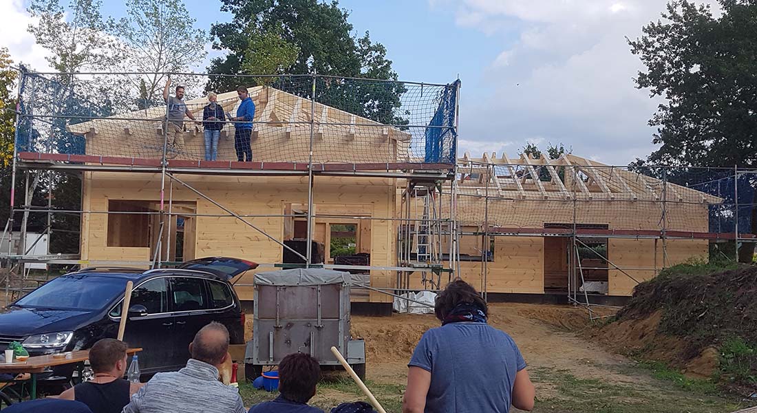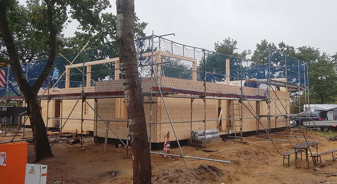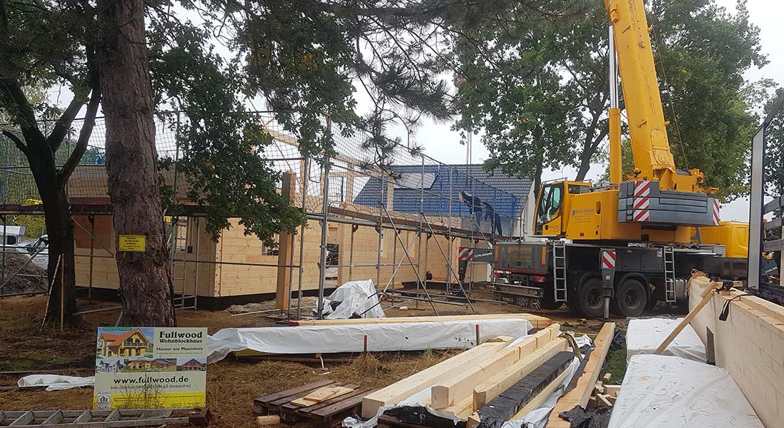 Das Baupaar möchte möglichst viel Eigenleistung erbringen, deshalb entsteht das Blockhaus als Richtmeistermontage. Die detaillierte Planung des winkelförmigen Bungalows verläuft ganz individuell nach Bauherrenwunsch und sehr flexibel mit etlichen Änderungen in der Planungsphase. In das Blockhaus wird auch ein neues Familienmitglied mit einziehen: Während der Bauplanung gebar die Bauherrin einen gesunden Sohn. Wir gratulieren den glücklichen Eltern! Ihr Sohn darf in einem wohngesunden Blockhaus von Fullwood aufwachsen.