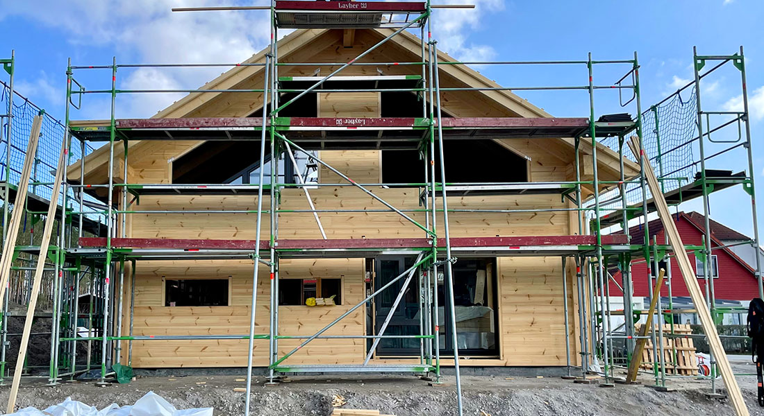 Alternativ zu unserer einschaligen Blockwand bieten wir auch eine im Kern gedämmte Kombiblockwand an. Diese ist im Blockhaus Innenbereich gestalterisch flexibel und besitzt rein rechnerisch(!) einen niedrigeren U-Wert. Die Bauherrschaft dieses Blockhauses hat ihr Holzhaus mit aufgebaut und arbeitet derzeit im Innenausbau weiter. Diese Baustufe nennt sich „Richtmeistermontage“ und ist sehr beliebt. Auch unsere ökologische Bauweise und unsere per se sehr energieeffizienten Blockhäuser erfreuen sich immer größerer Popularität.