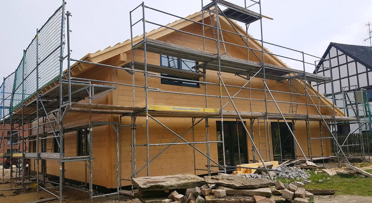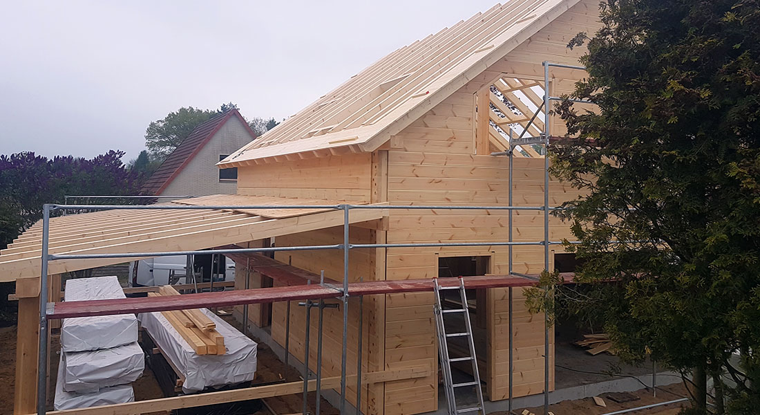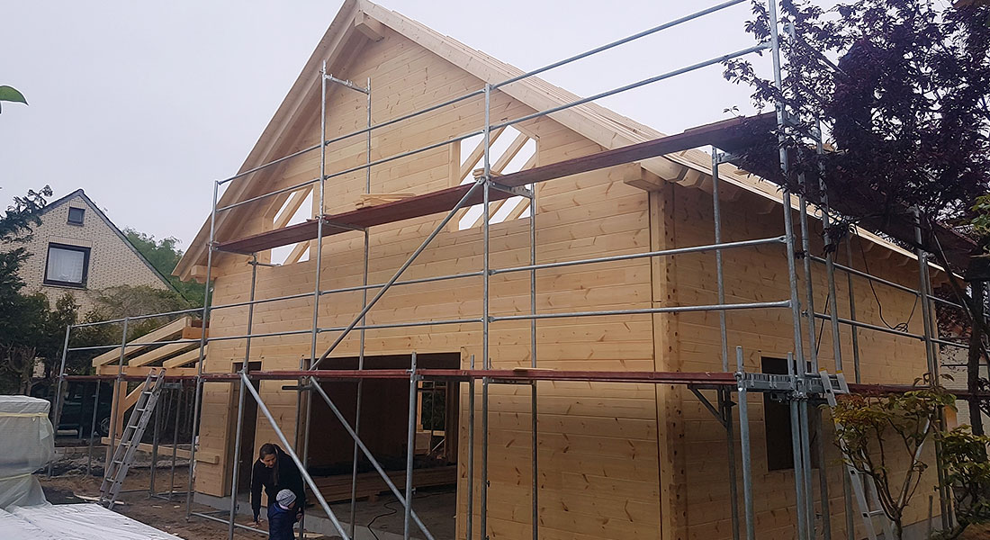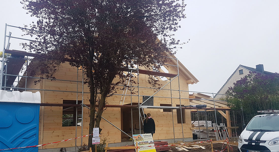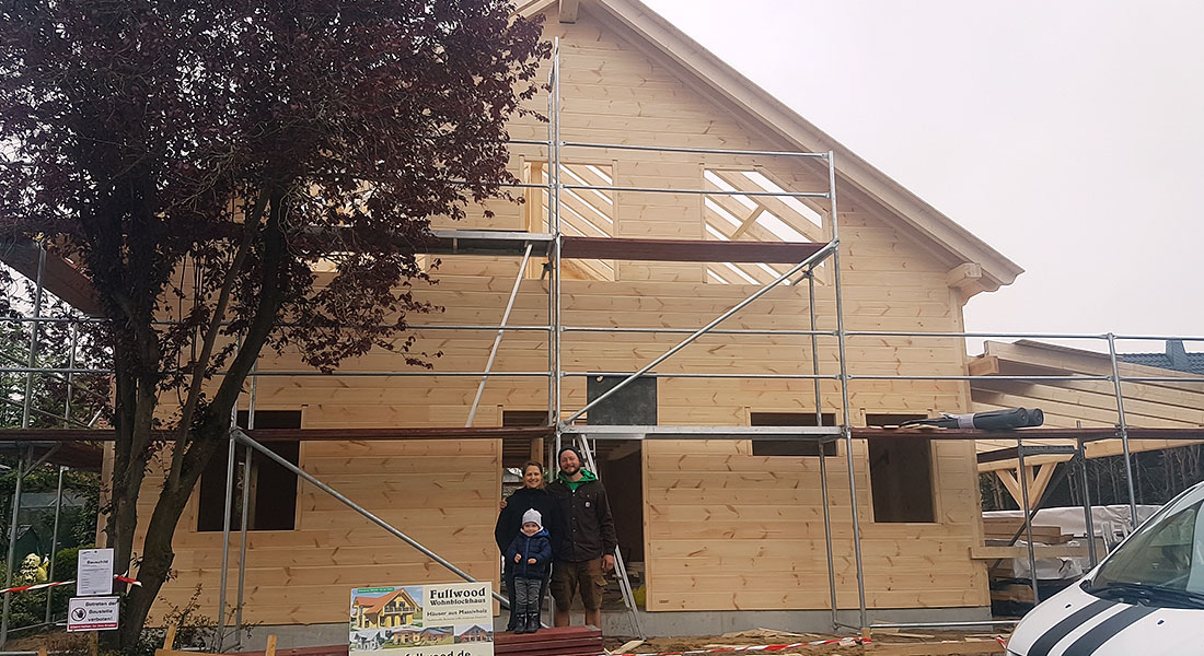 Besonders die geradlinigen, ökologisch gebauten und energieeffizienten Blockhäuser von Fullwood sind beliebt, zumal deren Wände auch noch setzungsfrei sind. Das eigene Blockhaus baut die Eigentümerfamilie mit viel Engagement und Eigenleistung.