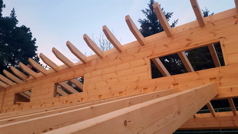 Blockhaus mit versetztem Pultdach