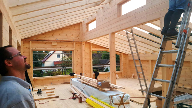 Mit viel Eigenleistung gehen sie ans Werk um sich ihren Traum vom wohngesunden Blockhaus zu erfüllen. Um den von ihnen bevorzugten zeitgemäßen Stil zu verdeutlichen, wählt das Baupaar Fullwood aus, denn deren glatte, helle Kiefernwände wirken nicht rustikal. Gekrönt wird das Blockhaus mit einem versetzten Pultdach, welches die moderne Architektur unterstreicht. Aber nicht nur die Äußerlichkeiten sind bei diesem Blockhaus in Brandenburg up to date sondern auch die setzungsfreien, winddichten Kiefernwände, die in exakter Fertigungstechnik im Werk entstehen, sowie die Energieeffizienz des aus Holz bestehenden Bungalows. Hinsichtlich Klimaschutz gehört jedes Blockhaus von Fullwood Wohnblockhaus sogar zu den Vorreitern, weil mit dem RAL-Gütezeichen für "CO2-senkenden Bauwerke" ausgezeichnet!