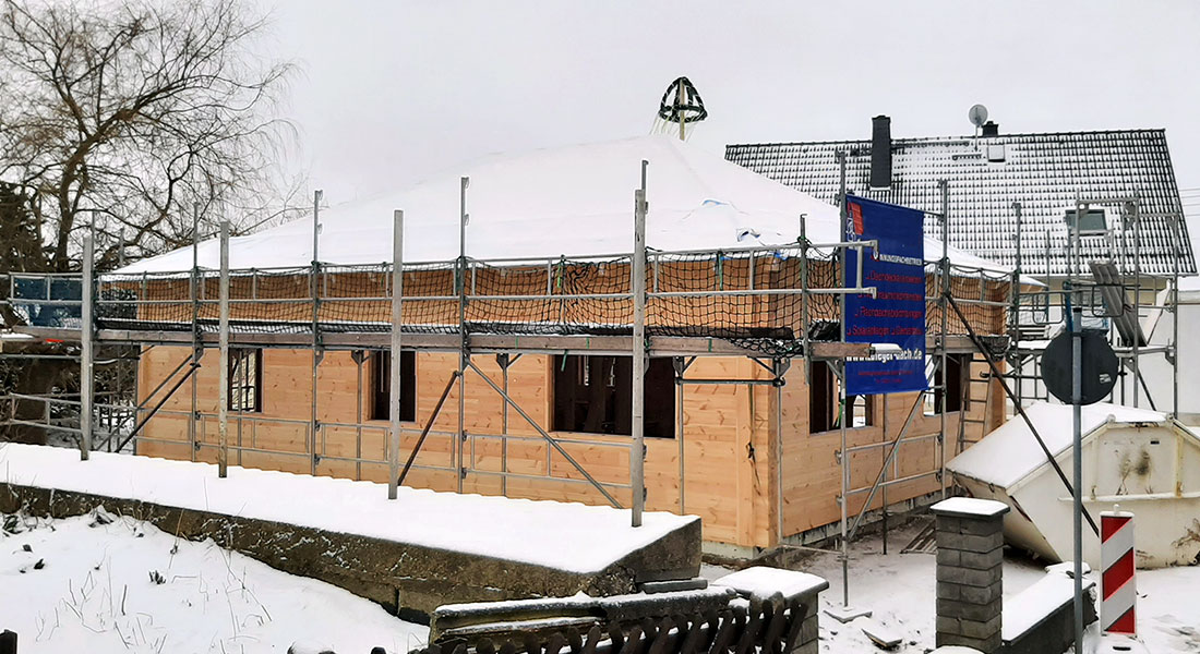 Hier entsteht ein wohngesundes und ökologisches Blockhaus in nachhaltiger Bauweise. Verbaut wird die einschalige Blockwand, welche einen Durchmesser von 20cm besitzt und ganz ohne Dämmung auskommt. Wir von Fullwood Wohnblockhaus sind stolz auf die ökologische Bauweise und die Setzungsfreiheit unserer Blockhäuser. Innovative Technik plus bewährte Handwerkskunst machen’s möglich.