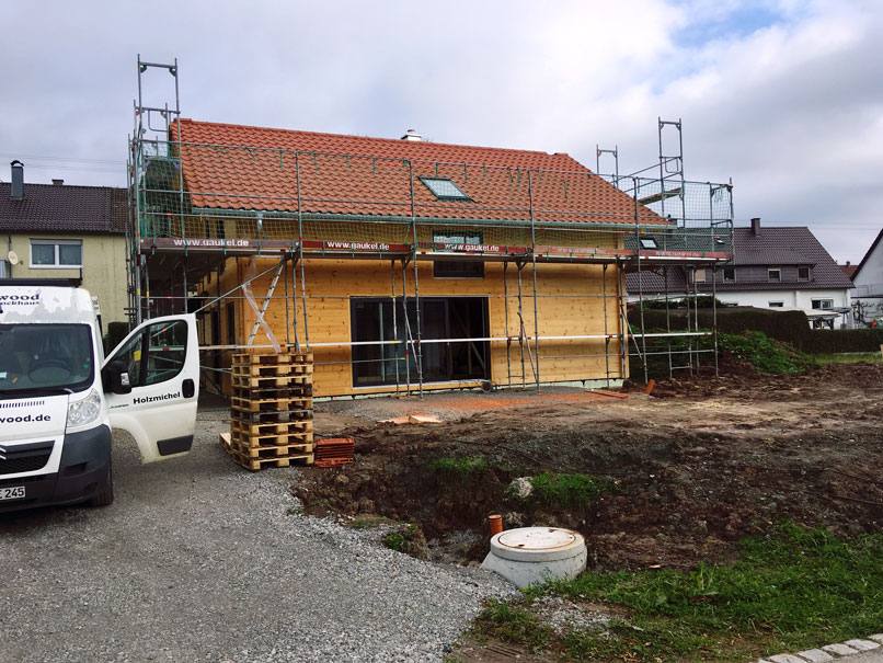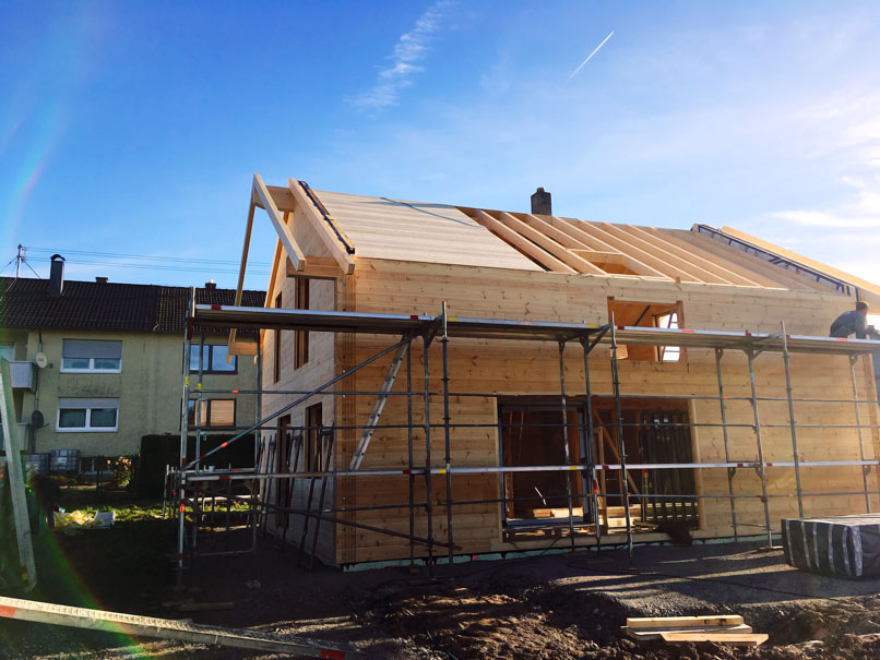 Der professionelle Fullwood-Richtmeister und seine erfahrenen Helfer montieren Holzwände, Deckenbalken und Dachsparren in wenigen Tagen zum Blockhaus im Rohbauzustand. Auch den Dachstuhl, die Dacheindeckung und den Fenstereinbau erledigt das Fullwood-Team rasch und präzise. Zuletzt setzt es noch die Trennwände im Blockhaus bevor die Örtlichen Handwerksbetriebe, die das Baupaar engagiert hat, den Innenausbau übernehmen.