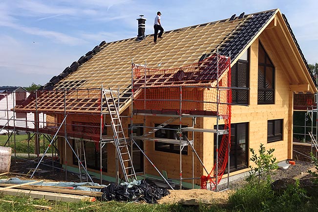 Alles kein Problem, wenn man mit einem Profi für Blockhäuser, wie Fullwood einer ist, zusammenarbeitet. Die 20cm dicken Massivholzwände für das Blockhaus werden im Planungsbüro exakt berechnet und gezeichnet, dann perfekt passend im Werk elementweise hergestellt und zuletzt solide auf der Baustelle montiert – und das in kürzester Zeit, da jedes Wandteil und jedes Bauteil sitzt (passt)! So geht einfaches Bauen!