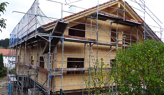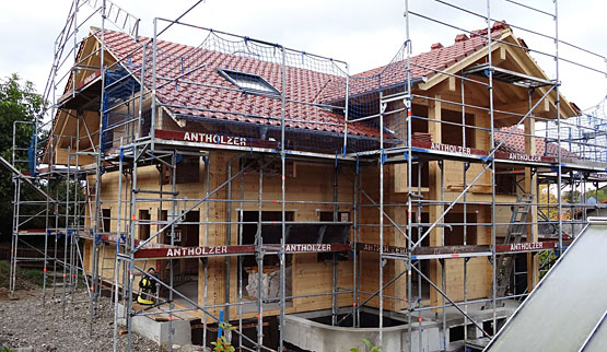 Im schönen Oberbayern, ganz in der Nähe vom Chiemsee, wird derzeit dieses großzügige Blockhaus gebaut. Entworfen und geplant wurde es zuvor in enger Zusammenarbeit zwischen Fullwood und den Bauherren.