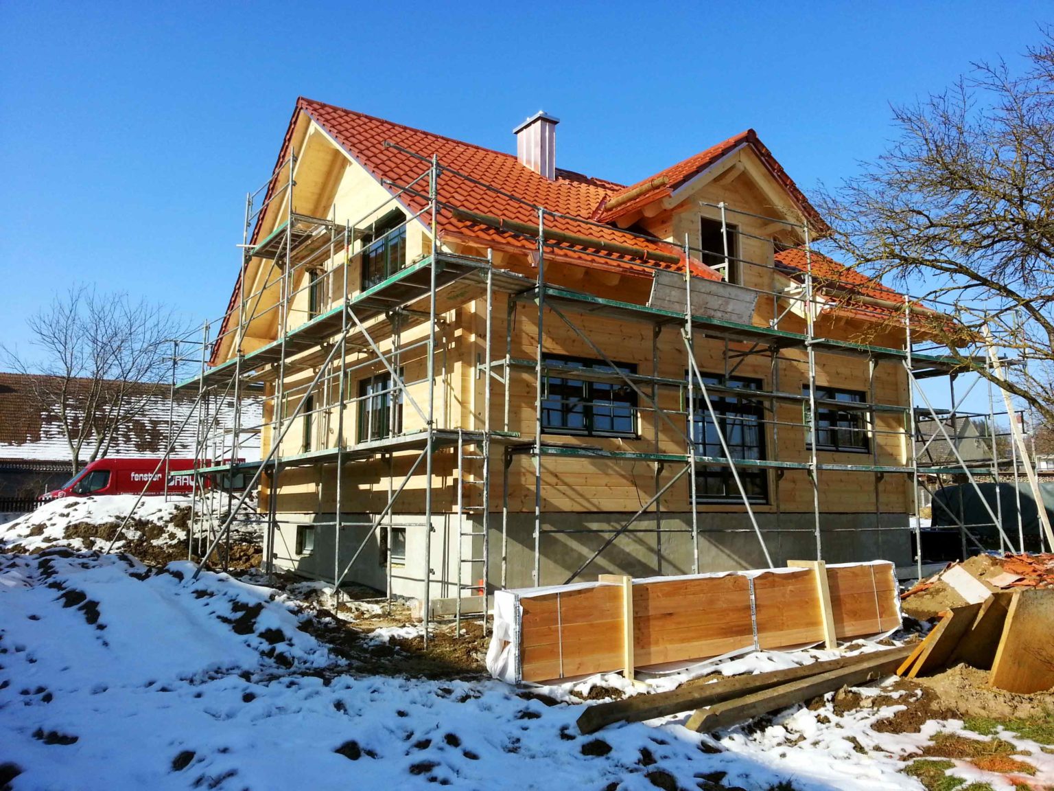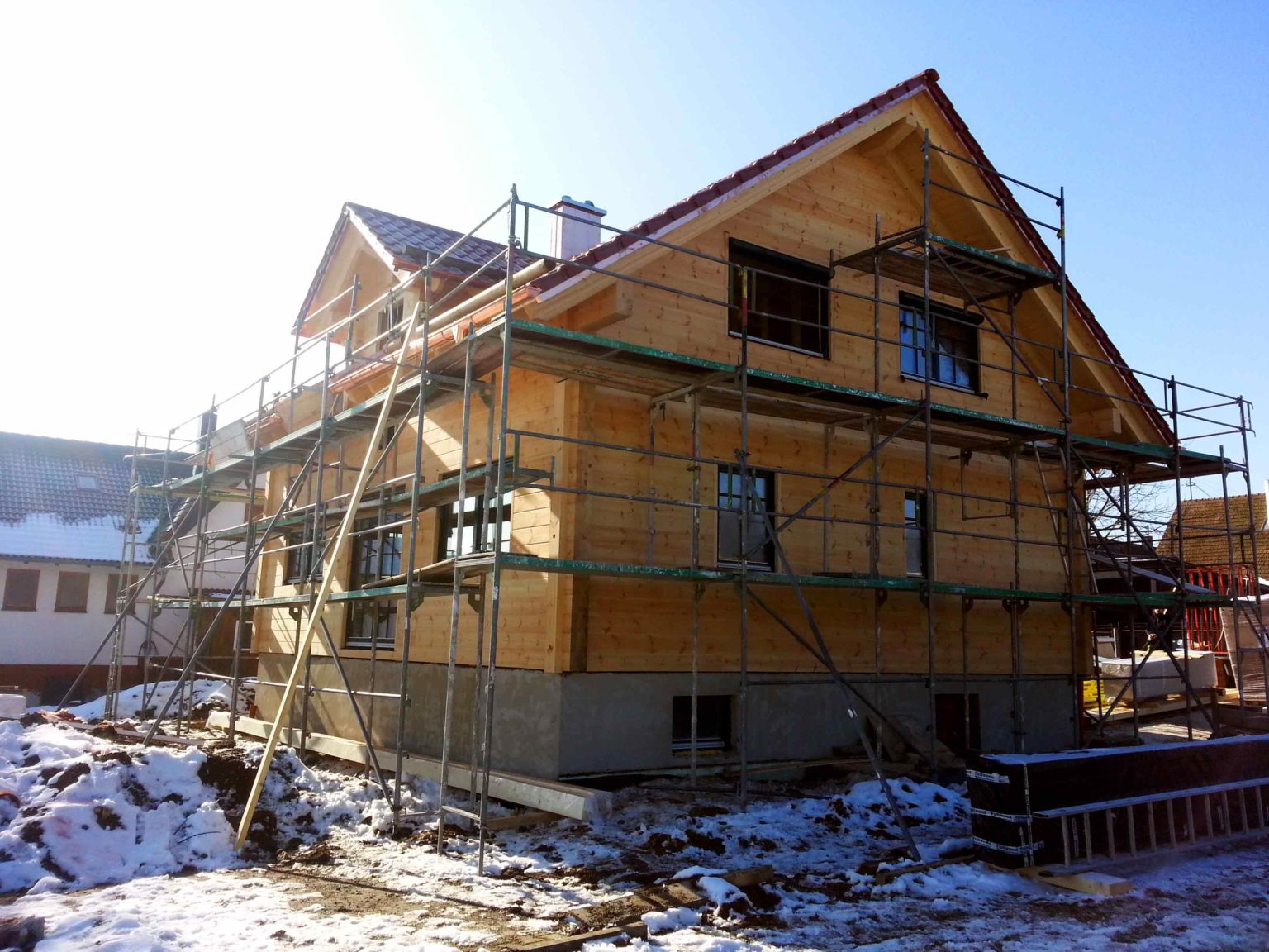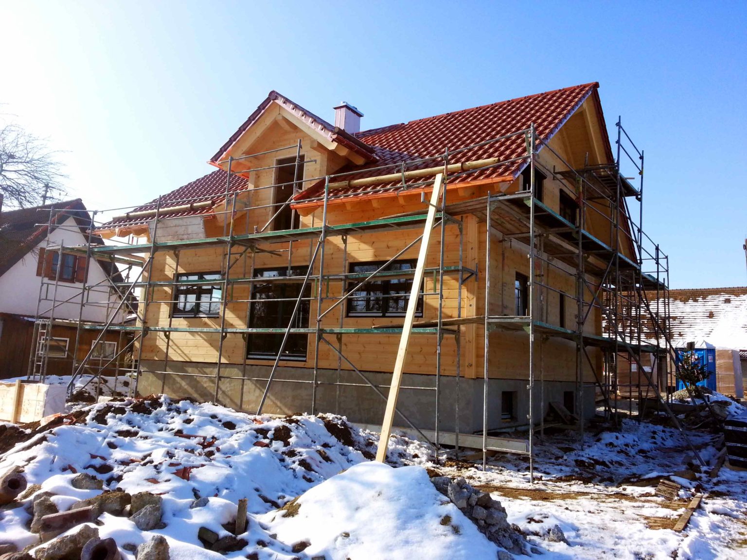 Auf einen bestehenden, solide gebauten Keller wird dieses individuelle Blockhaus gebaut. Das alte Haus, das auf den Kellermauern stand, wurde abgerissen und somit Platz für das erträumte massive Blockhaus geschaffen. Die innovative Fertigungstechnik von Fullwood Wohnblockhaus ermöglicht eine problemlose Kombination der glatten Vollholzwände mit Stein, Beton und vielen anderen Materialien. Auf diese Weise kommen die Bauherren an ein schönes Baugrundstück zwischen alten Bäumen, die geschont werden und erhalten bleiben, und mit lange vorhandener Infrastruktur.