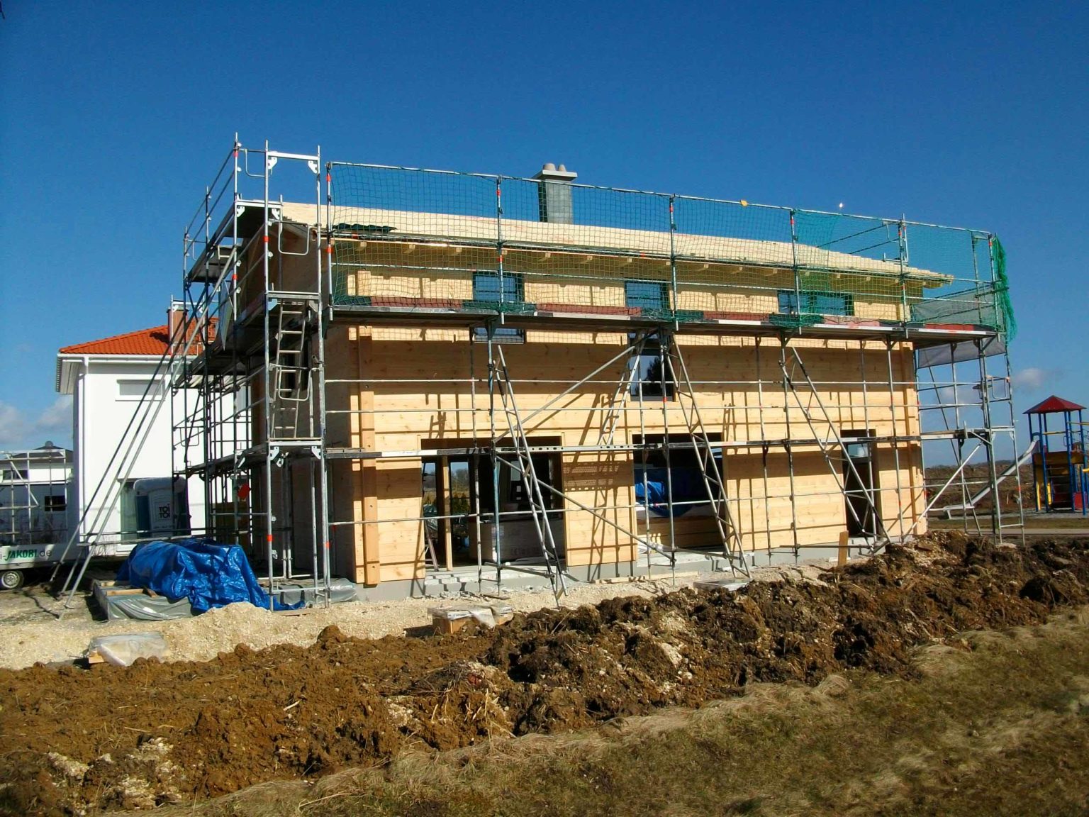 Damit auch im Dachgeschoss viel Kopffreiheit und Stellfläche für Möbel vorhanden ist, entscheiden sich die Blockhaus Bauherren für einen sehr hohen Kniestock und ein Satteldach mit geringer Neigung. Somit verfügt das moderne Blockhaus über zwei Vollgeschosse und fügt sich architektonisch perfekt in die Nachbarschaft ein. Es ist ein weiteres Beispiel dafür, dass ein Blockhaus von Fullwood auch in moderne Neubaugebiete passt. Von Landhaus bis Pultdachhaus gleicht kein Blockhaus von Fullwood dem anderen. Allen gemein ist aber die wertige Vollholzwand, das Herzstück und die Basis jedes Fullwood Wohnblockhauses. Nachhaltig Bauen kann so schön sein!
