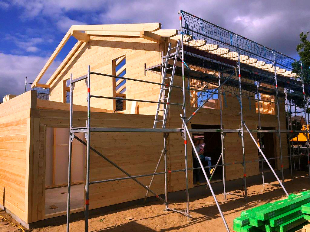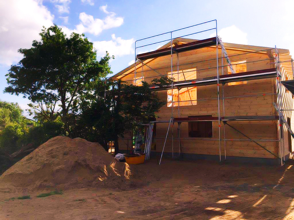 Die Bauherren entscheiden sich für ein echtes Blockhaus von Fullwood mit Effizienzhausstandart. Gebaut wird das Blockhaus in Vollmontage mit der Kombiblockwand, die Fullwood alternativ zur einschaligen Vollholzwand anbietet. Dank des hohen Kniestocks und der flachen Dachneigung, verfügt das neue Blockhaus über zwei Vollgeschosse – genug Platz also, für die ganze Familie! Vorgesehen ist eine Pelletheizung als moderne, Ressourcen schonende Wärmequelle. Das Ehepaar ist rundum zufrieden mit der individuellen Beratung, gut strukturierten Planung und reibungslosen (Innenaus-)Bauphase!