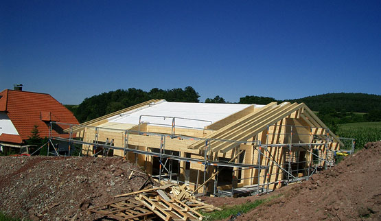 An der Murr baut eine Familie aus dem Rheinland ihr massives Blockhaus. Berufsbedingt muß der Bauherr mit Frau und zwei Kindern ins Ländle ziehen. Damit sie die Heimat nicht zu sehr vermissen, erfüllen sich die Eltern ihren Traum vom eigenen Blockhaus und bauen dieses in einem Neubaugebiet mit herrlichem Blick ins schöne Umland. Da die Bauherrschaft Fullwood Wohnblockhaus schon von zu Hause kennt, kommt von Anfang an nur der erfahrene Blockhaus-Spezialist mit Muttersitz in Lohmar in Frage. Setzungsfreiheit und Wartungsfreiheit ist den Kunden sehr wichtig, womit sie bei Fullwood genau richtig sind. Um ihren finanziellen Rahmen nicht zu sprengen, erledigen die Bauherren viel in Eigenleistung, auch mit Hilfe von Familie und örtlichen Fachhandwerkern.