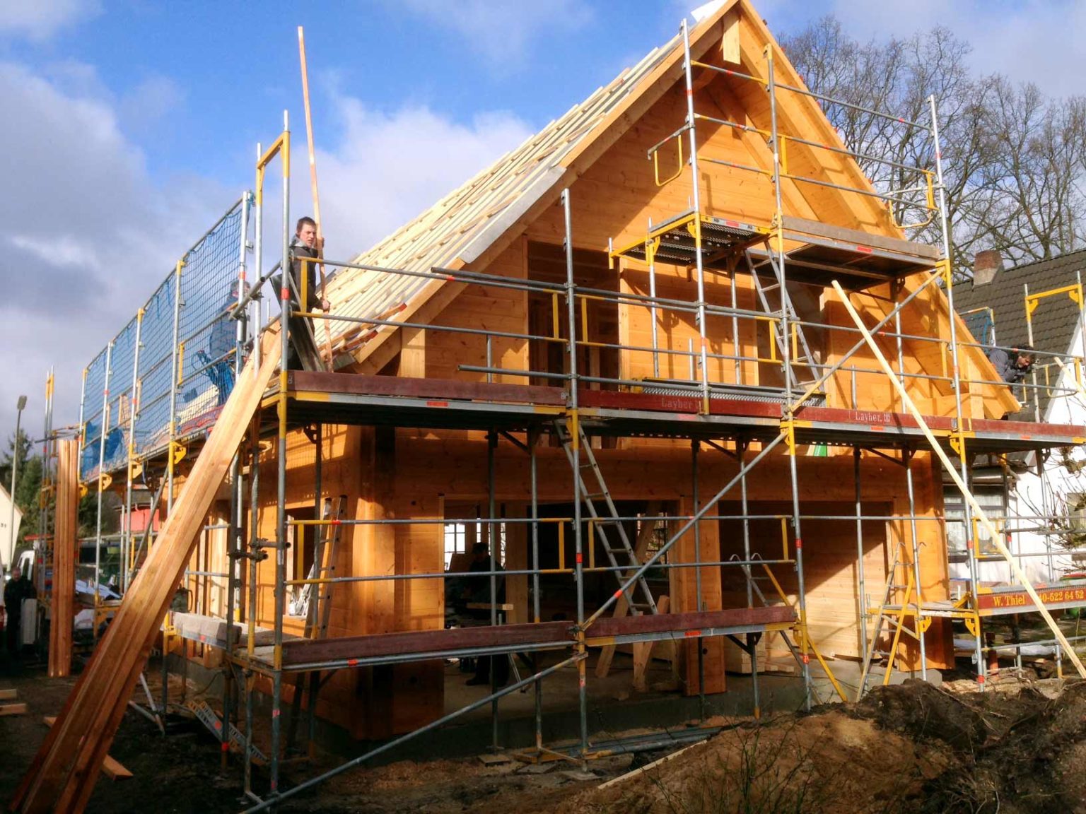 Der Blockhaus Spezialist baut seit Jahrzehnten moderne und wertbeständige Blockhäuser in hoher Qualität. Da machen sich die vergleichsweise höheren Materialkosten für das durch und durch massive Blockhaus langfristig bezahlt. Das Blockhaus wird in Vollmontage seitens Fullwood geliefert, das heißt die im Werk vorgefertigten Wandelemente werden pünktlich zur Baustelle transportiert und dort binnen weniger Tage montiert, inklusive Fenster, Türen und Dach. Die Bauleitung (Organisation und Koordination der Gewerke) hat in diesem Fall der Bauherr selbst übernommen.