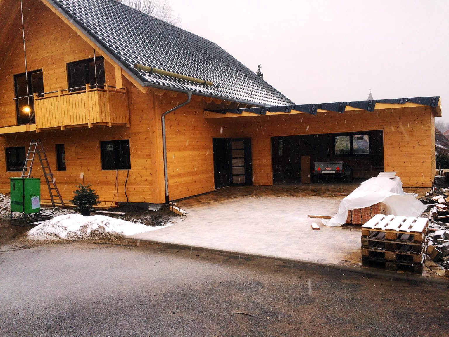 Blockhaus Montage bei ungemütlichen Temperaturen