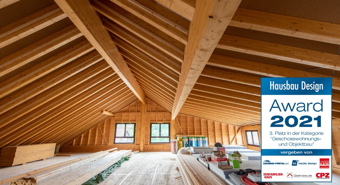 Wir freuen uns sehr über den 3. Platz in der Kategorie „Geschosswohnungs- und Gewerbebau“, den wir beim „Hausbau Design Award 2021“ gewonnen haben!