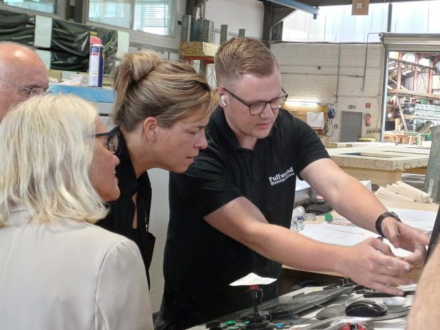 Mit großem Interesse an unserer nachhaltigen und ökologischen Bauweise folgte Mona Neubaur den Ausführungen von Firmeninhaber Jürgen Lemmer und Geschäftsführer Stefan Kessner und sprach persönlich mit einzelnen Werkstattmitarbeitern, um sich ihre Arbeit zeigen zu lassen.