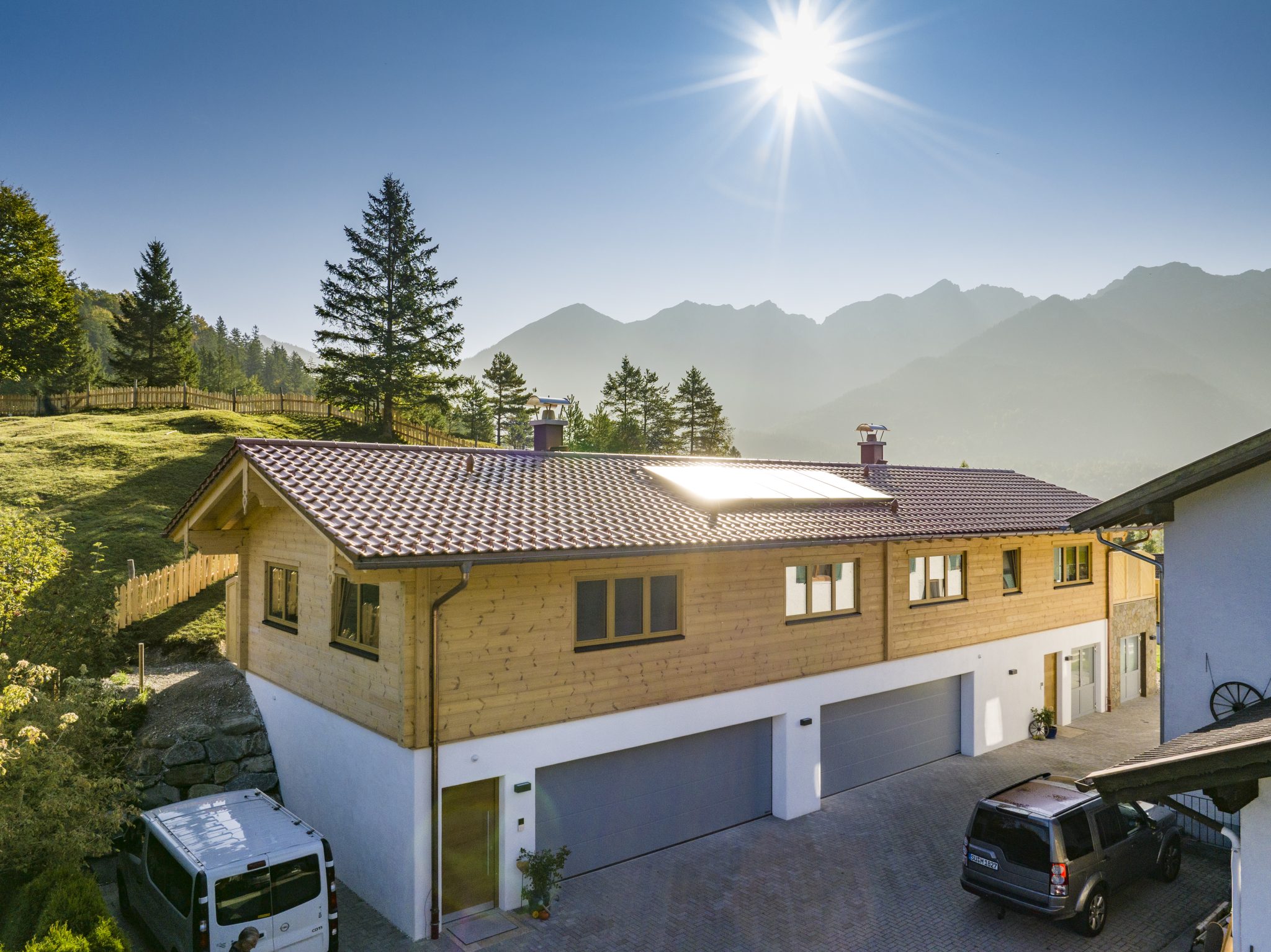 Tolles Holzhaus aus Massivholz. Super Qualität und sehr kompetente Beratung vor Ort. Der Sichtdachstuhl und die Aussicht sind genial. Fullwood Wohnblockhaus sind Profis im Massivholz- und Blockhausbau