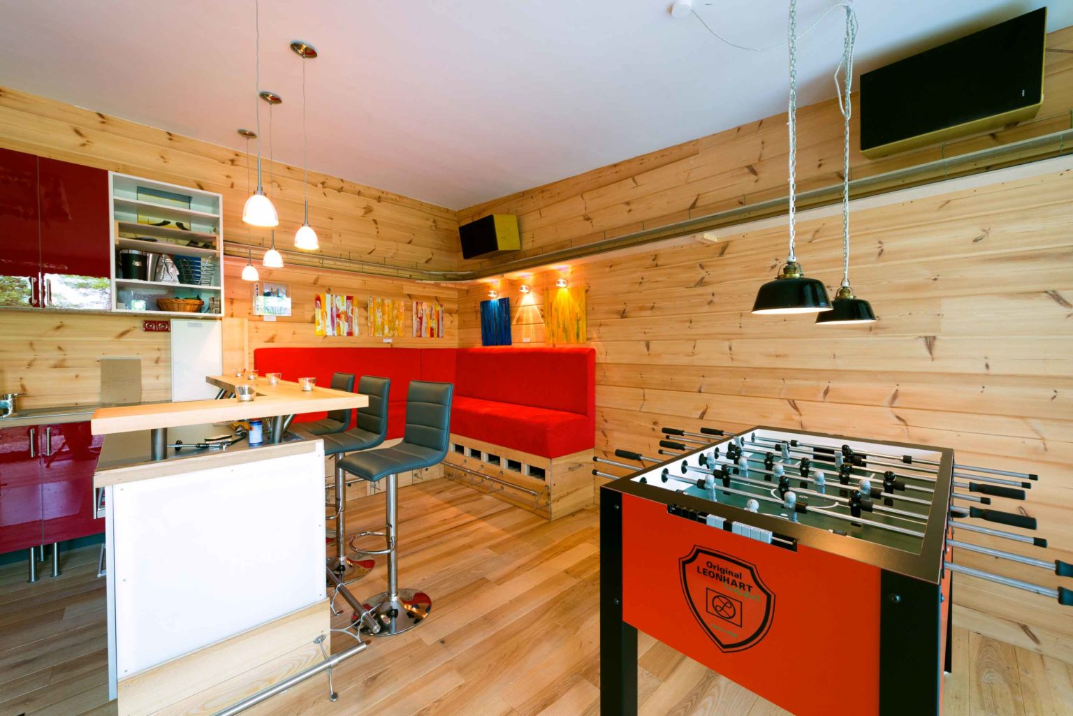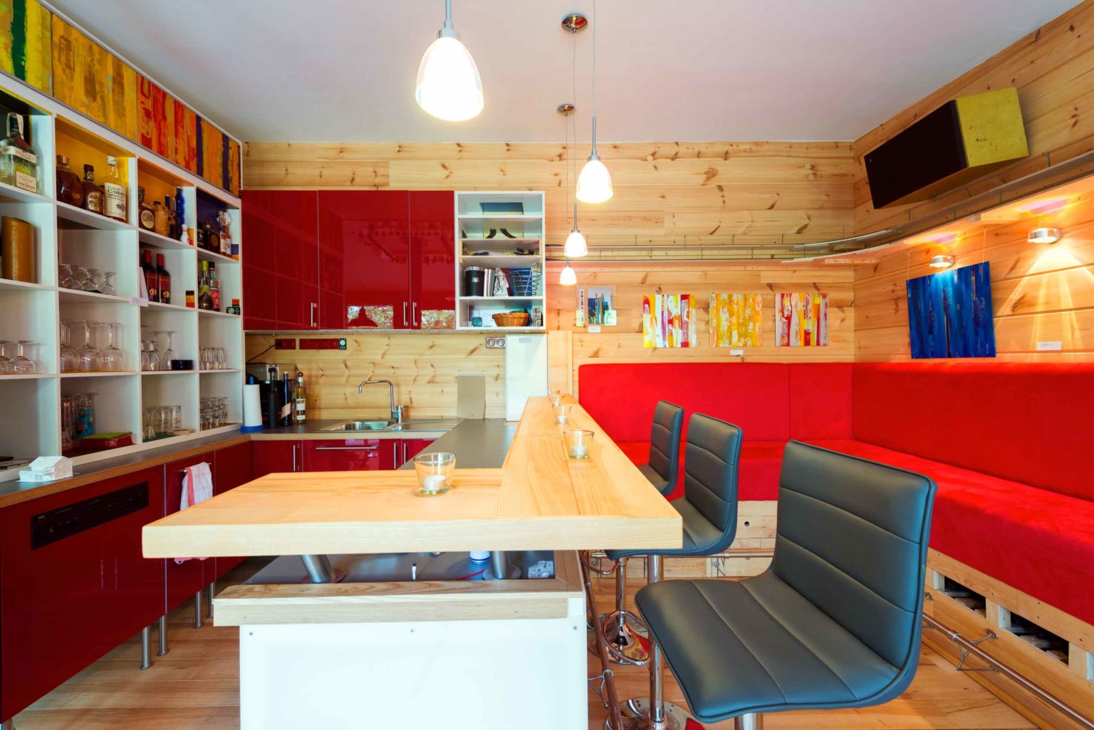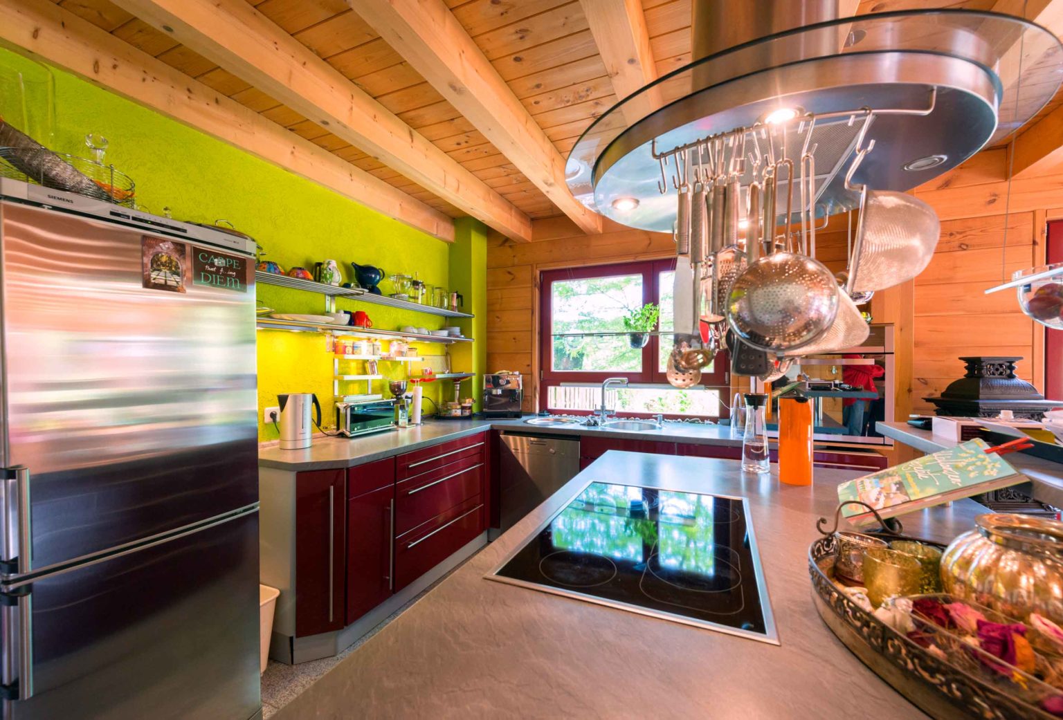 Warmes Holzhaus Ambiente mit expressiven Farben