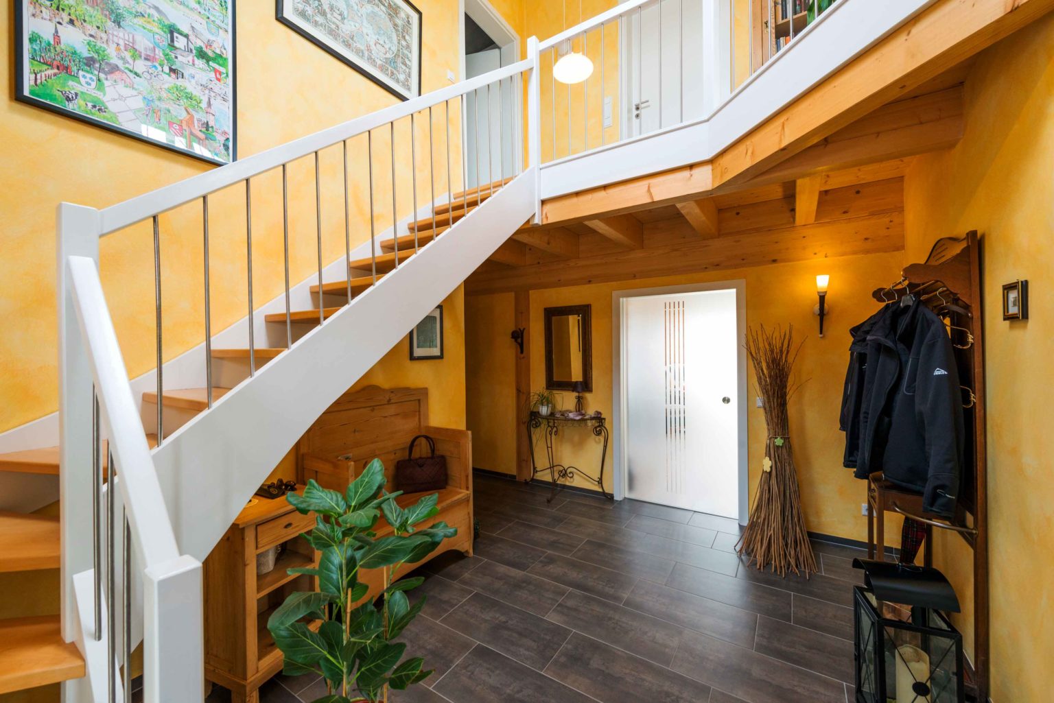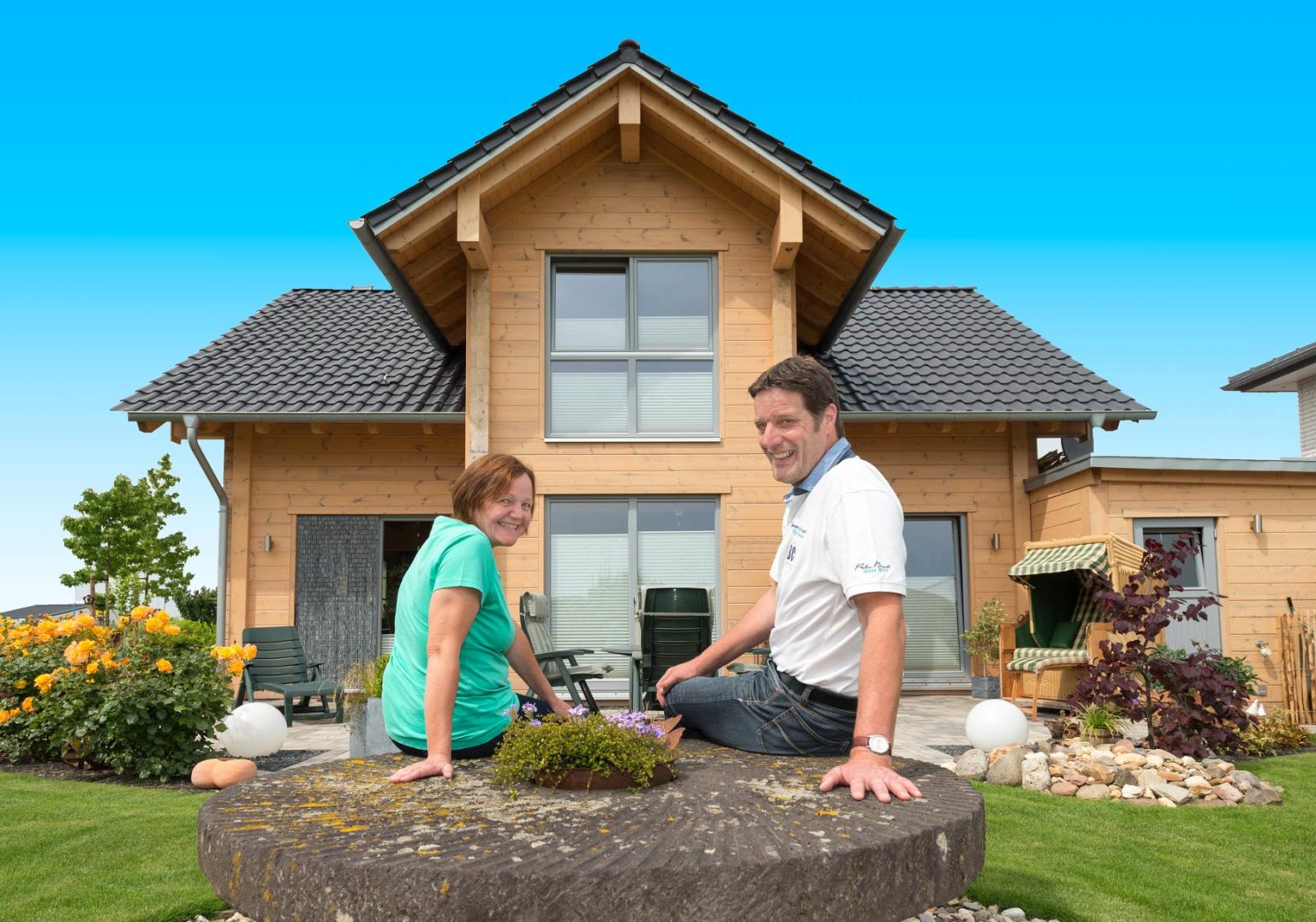 erinnert sich der Eigentümer von Holzhaus „am Mühlstein. „Für die intensive Beschäftigung mit diesem Vorhaben und die Suche nach einem renommierten Bauträger, der Massivbauweise, Klimaschutz u. Energieeinsparung umsetzen konnte, nahmen wir uns viel Zeit.“, fährt seine Frau fort. Letztlich führte aber der Zufall das Ehepaar zum Holzhausspezialisten Fullwood: Während eines Ausfluges mit Verwandten entdeckten Sie eines seiner Musterhäuser und wussten gleich übereinstimmend: „Das ist es!“.