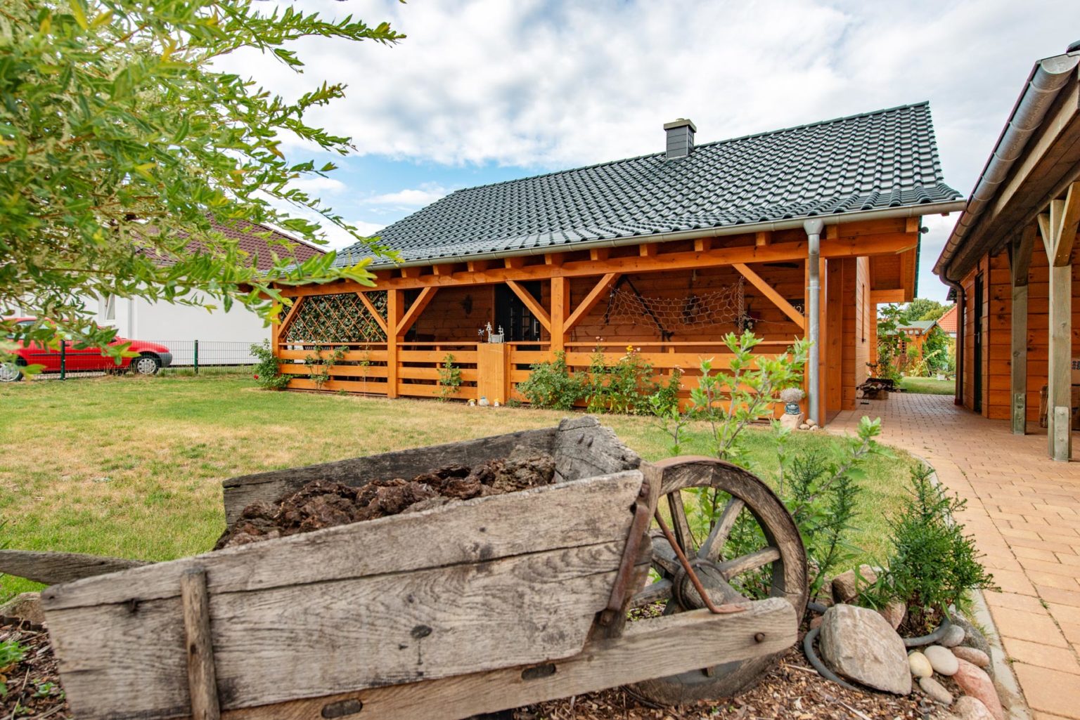 Angela und Peter kannten sich noch nicht sehr lange als sie beschlossen, ein gemeinsames Haus zu bauen. Das Eigenheim sollte unbedingt barrierefrei sein und aus massiven, einschaligen Holzwänden bestehen. „Die modernen Holzhäuser von Fullwood gefielen uns gleich, und deren Qualität und Verarbeitung überzeugte uns auch vollkommen.“, erinnert sich die Hausherrin. Vor allem auch die Setzungsfreiheit der Kiefernwände war ein wichtiges Argument für das Eigentümerpaar von Holzhaus „am Plauer See“. Begeistert betont Peter Kissing weitere Vorzüge seines Holzhaus Herstellers: „Der Service war von Anfang an toll, der Richtmeister und sein Team einfach nur klasse, und alles klappte super!“ Erfreulich, dass Fullwood den Hausentwurf von Angela Kissing 1:1 übernehmen und technisch umsetzen konnte. Bereits 1 Jahr vor Baubeginn wusste das Paar schon, wie alles sein und aussehen sollte. „Lange bevor unsere überdachte Veranda montiert wurde, hatten wir schon den passenden Schaukelstuhl à la Waltons gekauft – ein absolutes Muss für uns.“, lacht Angela Kissing. Nach nur sechs Monaten Bauzeit war Holzhaus „am Plauer See“ nicht nur bezugsfertig sondern fix und fertig ausgestattet - trotz der ausschließlichen Eigenleistung im Ausbau. „Natürlich haben wir auch Fehler gemacht – wir sind ja keine Profihandwerker - und mussten auch mal was abreißen und nochmal machen, aber das hat uns nicht gestresst.“, meint der Hausherr.