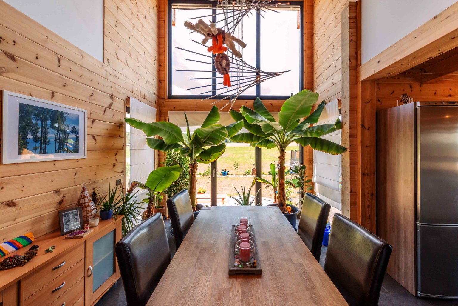 Ein wichtiges Argument, das für Fullwood sprach, war die schnelle Montagezeit der im Werk passgenau vorgefertigten Wandelemente und die Möglichkeit einer „Richtmeistermontage“. „Die Zusammenarbeit mit Fullwood war hervorragend! Wir haben sehr viel beim Hausaufbau mithelfen können, mit Familie und Freunden waren wir ein 4-5 köpfiges Team, das den Anweisungen des Richtmeisters folgte. Die Arbeit war anstrengend, aber wir hatten sehr viel Spaß mit unserem Richtmeister. Und alles lief problemlos, da die einzelnen Wandelemente und Dachstuhlbalken perfekt zugeschnitten waren und immer sofort passten.“, erzählt der Hausherr. Die Dacheindeckung und den Innenausbau führte das Baupaar ebenfalls mit Hilfe von Verwandten und Freunden selbst durch. Nur im Bereich Heizung, Estrich und Innentreppe zog man örtliche Fachfirmen hinzu. Insgesamt dauerte die Ausbauzeit ein gutes Jahr, da die Baufamilie natürlich auch ihren Berufen nachgehen musste. Am Ende war aber alles perfekt und genau so, wie es das Ehepaar wollte.