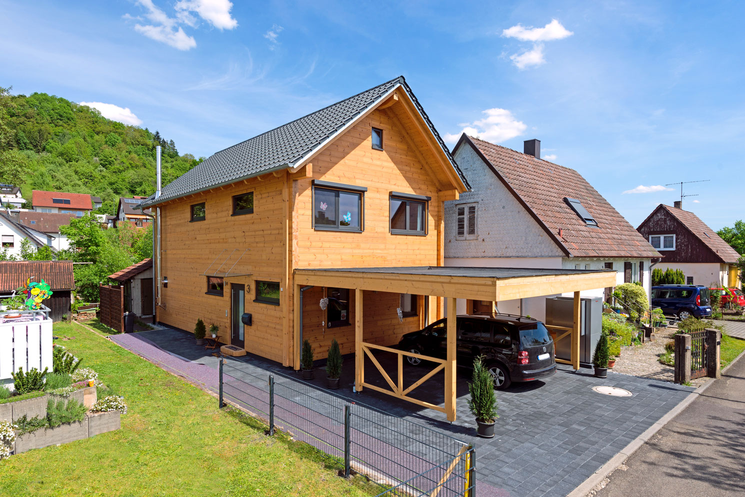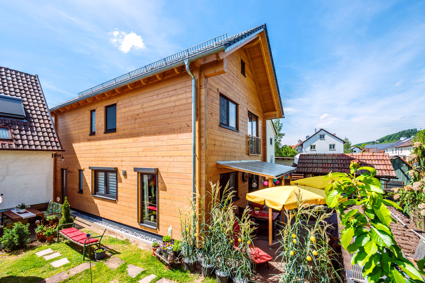Wohngesundes Familien Holzhaus auf kleinem Grundstück