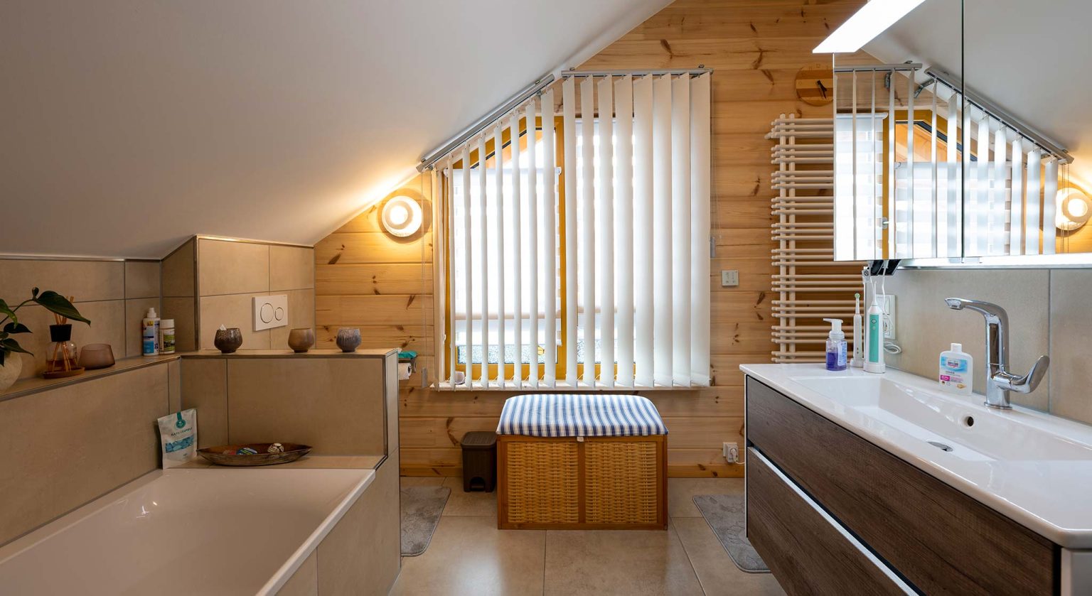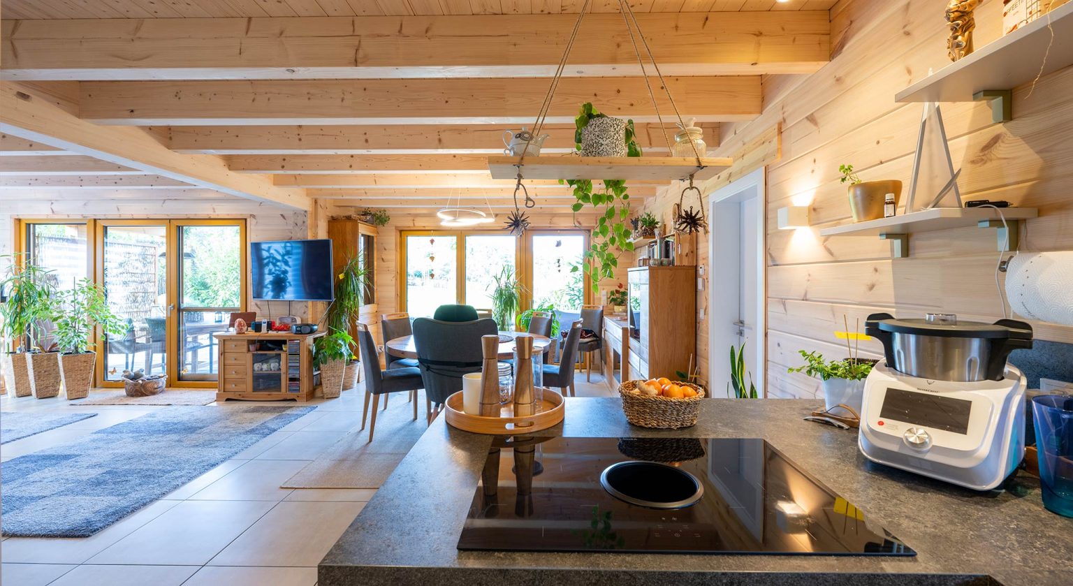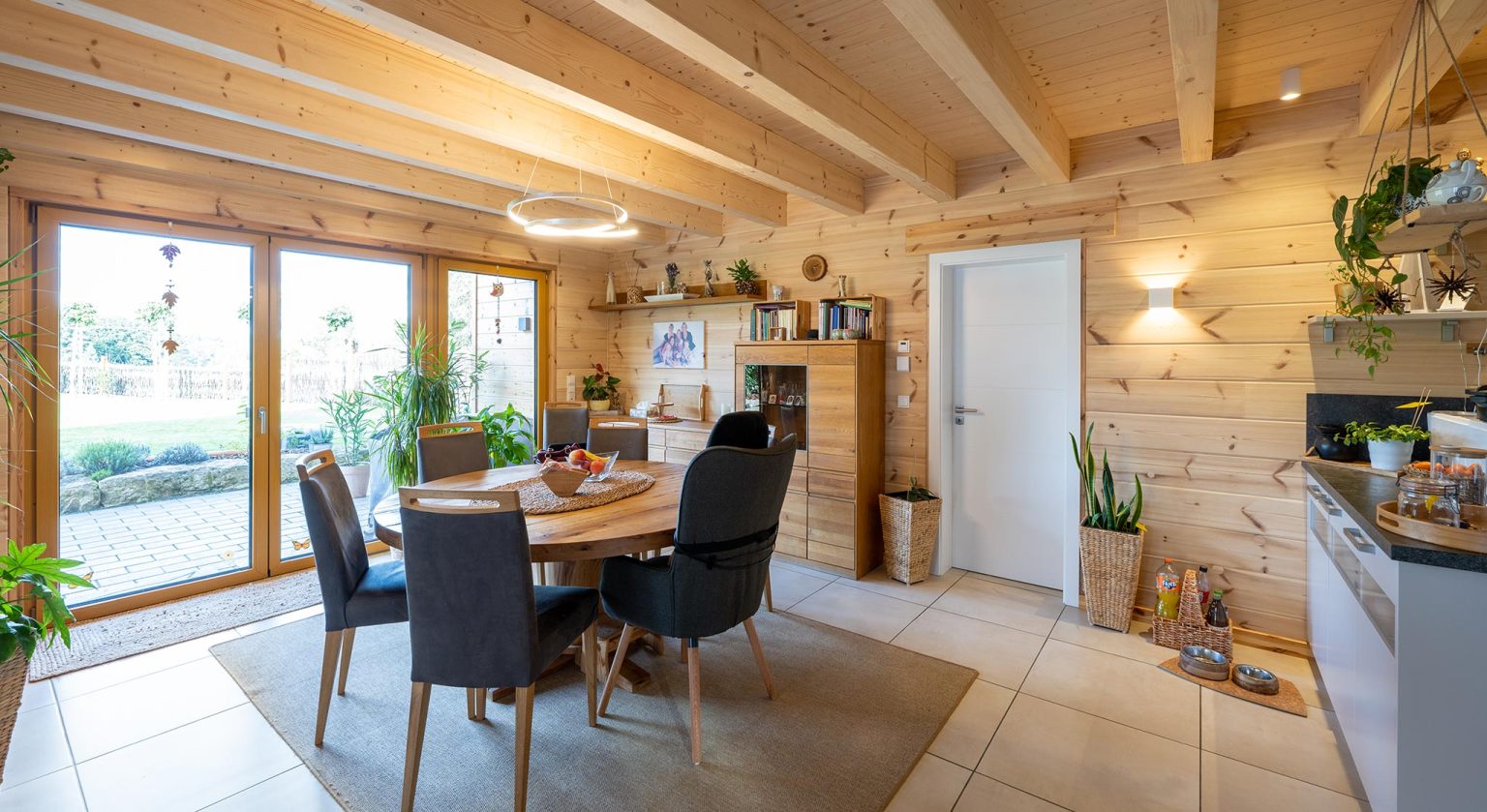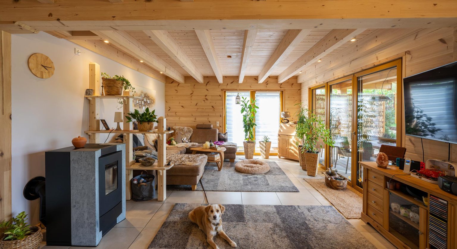 „Mit dem Bau unseres Altersruhesitzes haben wir meiner Meinung nach einen sehr guten – also kleinen – ökologischen Fußabdruck hinterlassen. Das entspricht unserer Einstellung und lässt uns guten Gewissen in die Zukunft unserer Kinder und Kindeskinder blicken. Außerdem handelt es sich bei den Fullwood Holzhäusern um solide Wertarbeit mit wertstabiler Langlebigkeit, von der weitere Generationen profitieren werden.“, sagt der Eigentümer von Holzhaus „auf der Hörre“. Dass bei Bedarf Um- und Anbauten dank der speziellen flexiblen Blockbauweise des Holzhaus Spezialisten einfach durchführbar sind, macht diese Holzhäuser noch attraktiver. Neben Ökologie, Klimaschutz und Altersvorsorge bzw. Wertanlage trumpfen außerdem noch die Energieeffizienz sowie das gesunde Wohnklima jedes Fullwood Wohnblockhauses. „Wir haben mit der ungedämmten, durch und durch massiven Blockwand gebaut und sind überaus zufrieden mit der Dämmeigenschaft. Wie versprochen, ist der Heizenergiebedarf unseres Hauses im Winter sehr gering, tatsächlich geringer, als der errechnete Primärenergiebedarf in der Theorie vermuten ließe.“ Auch die guten Wärmeschutzfenster und Dachdämmung leisten ihren Beitrag zur Energieeffizienz von Holzhaus „auf der Hörre“. „Ehrlich gesagt, ist uns mittlerweile aber der unbeschreibliche Wohlfühlfaktor mit dem schönen, behaglichen Raumklima in unserem Haus das Wichtigste!“, gibt der Hausherr freudig zu und schwärmt von dem zarten Kiefernduft in den eigenen vier Wänden. Jederzeit würden er und seine Frau wieder ein Holzhaus bauen und nur mit Fullwood.