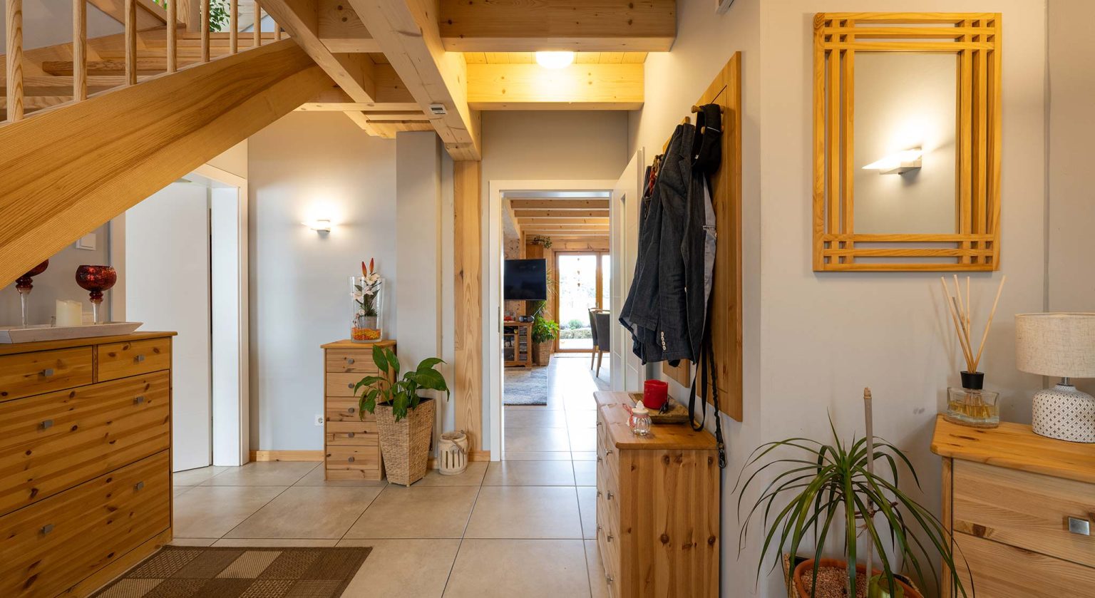 Von der unkomplizierten Zusammenarbeit mit seinem Haushersteller ist Edgar Teichmann begeistert. Von der Planung bis zur Bauphase lief alles problemlos und kooperativ ab. Der deutsche Firmen- und Produktionsstandort trägt natürlich zu der sehr hohen Qualität und dem zügigen, kundenfreundlichen Ablauf bei. „Nach der individuellen Planung mit unserem Fullwood-Berater, haben wir unser Haus dann von den professionellen Fullwood-Monteuren errichten lassen und für die nachfolgenden Ausbauarbeiten örtliche Fachhandwerksfirmen aus dem Bekannten- und Freundeskreis engagiert. Selber haben wir nur Handlangerarbeiten gemacht und in erster Linie entspannt und beeindruckt die Hausmontage verfolgt.“, berichtet der Hauseigentümer. Nach nur acht Monaten, gerechnet ab Beginn der Erdarbeiten, konnten die Teichmanns bereits in ihr fertiges Eigenheim einziehen. Dank der perfekten Vorfertigung aller Hauswände, Decken- und Dachstuhlelementen war der Rohbau innerhalb von zwei Wochen fertig. „Wir hatten ein erstklassiges Bauteam, das perfekt aufeinander abgestimmt gearbeitet hat und alles hat auf den Millimeter genau gepasst.“, betont Edgar.