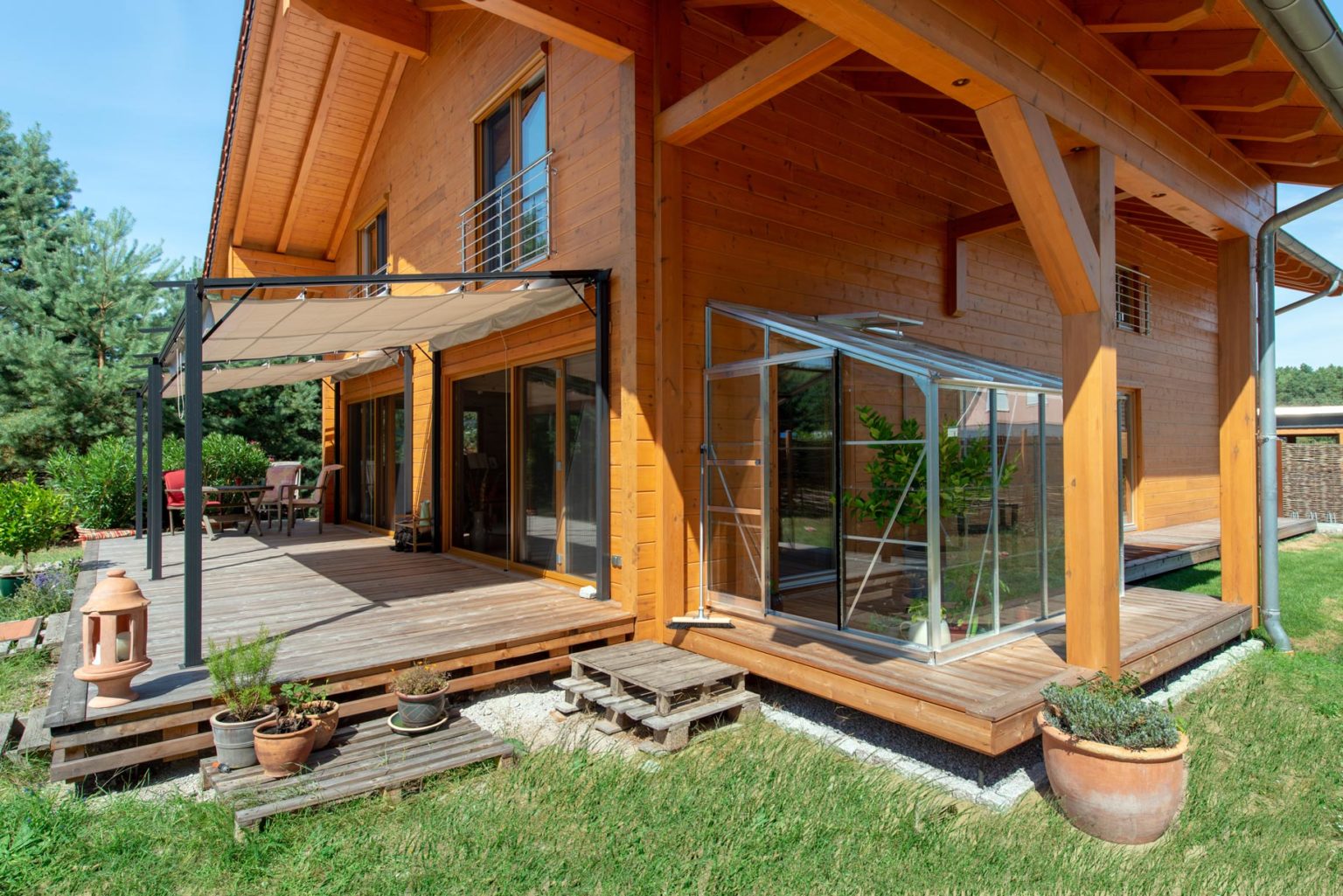 Ihr Holzhaus kauften die Eigentümer als Richtmeistermontage, was bedeutet, dass die Bauherrschaft unter der Regie eines Fullwood-Zimmermanns ihr Haus selbst baut. „Zusammen mit zwei Freunden und dem Richtmeister hat mein Mann unser Eigenheim aufgebaut. Die Wände wurden vorher im Werk passgenau angefertigt und in wenigen Elementen fertig geliefert.“, beschreibt die Hausherrin den Ablauf. „Die Innenwände habe ich gemeinsam mit einem Freund aufgestellt. Das war zwar sehr lehrreich, hat mich aber auch an meine Grenzen gebracht.“, gibt ihr Mann zu. Für den Innenausbau engagierten die Eigentümer Fachhandwerksbetriebe vor Ort, wobei Er überall mithalf, wo es möglich war. Holzhaus „auf der Zauche“ besitzt eine Fußbodenheizung, die mit Geothermie betrieben wird. Für die benötigte Erdwärmepumpe wurden eigens vier Tiefenbohrungen vorgenommen. Außerdem ließ man noch einen Brunnen zur Gartenbewässerung. „Unsere Energiekosten sind sehr niedrig.“, freut sich das Paar.