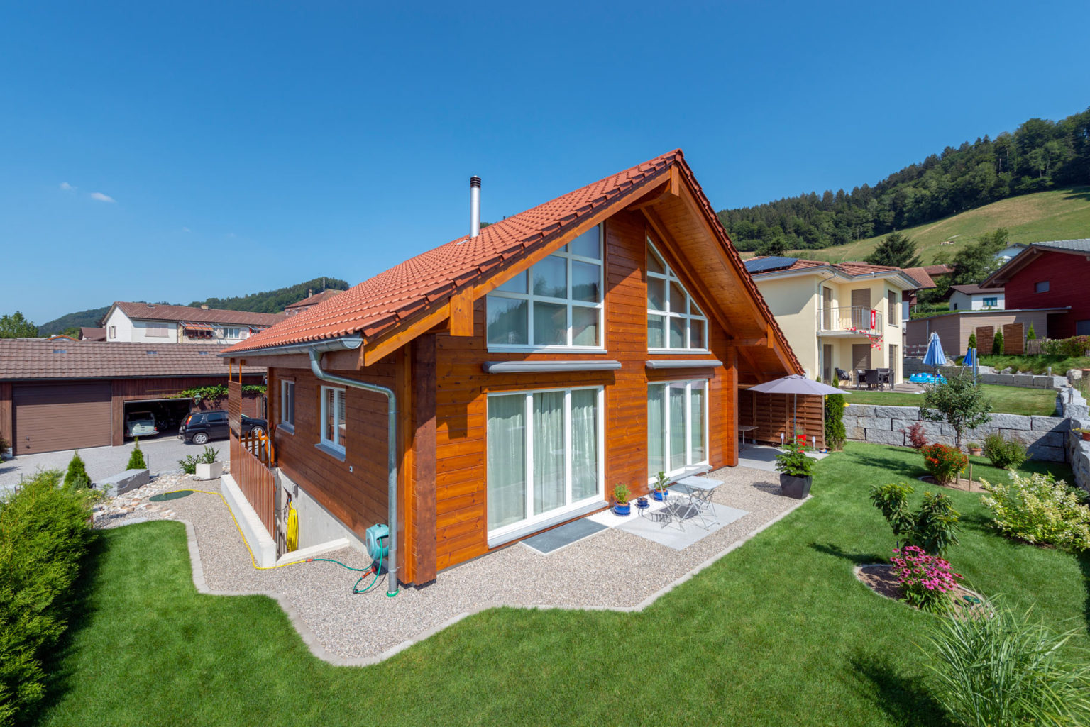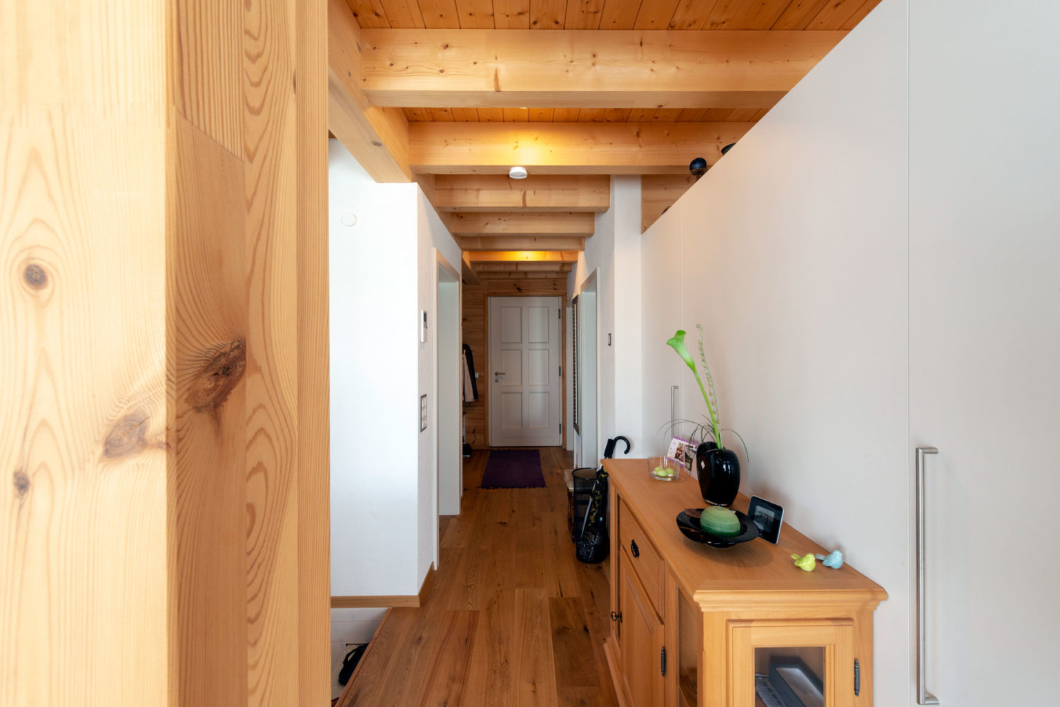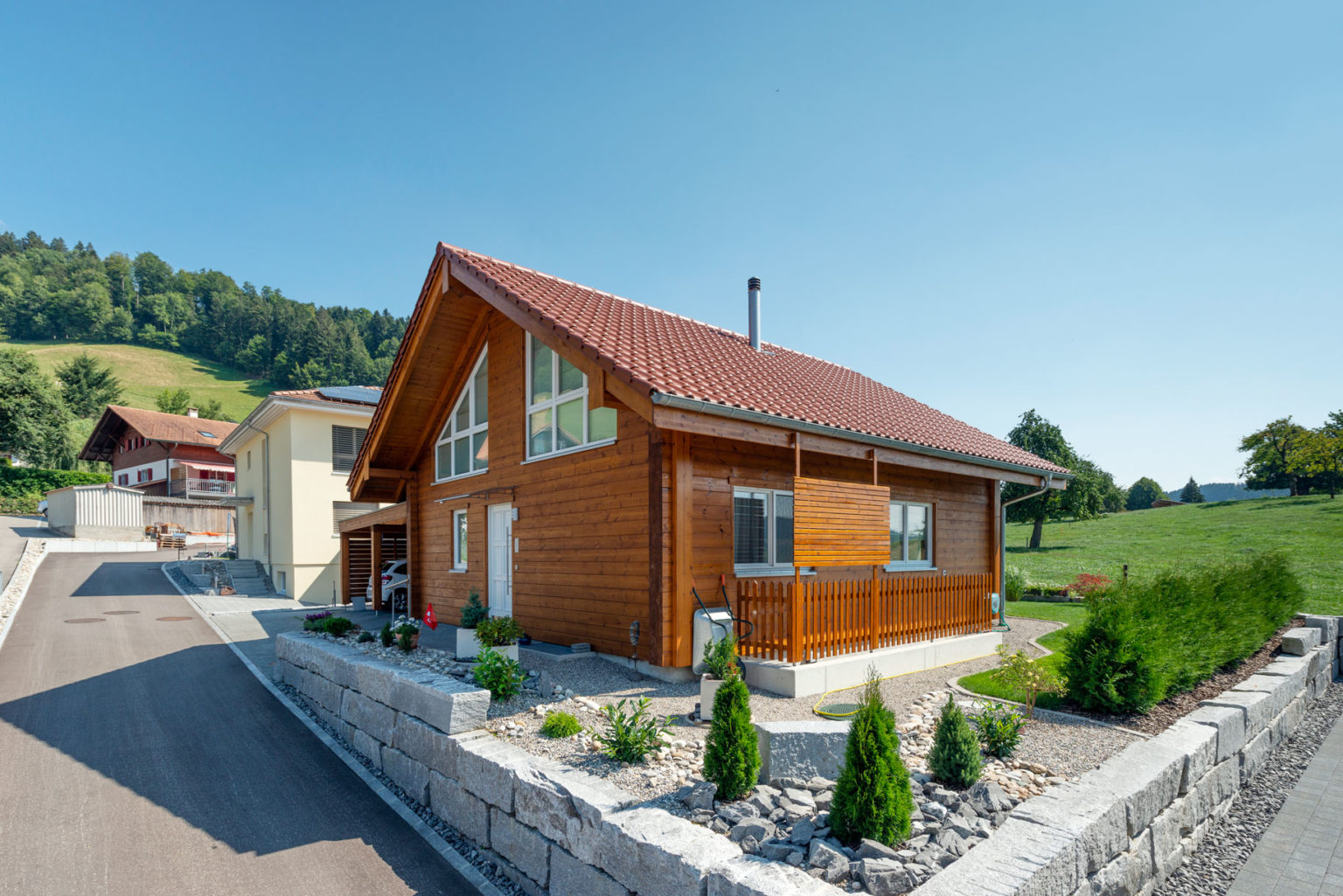 „Wir haben Fullwood im Internet entdeckt und sind dann ein Musterhaus besichtigen gefahren.“, erinnert sich die Hausherrin. Dann nahm alles seinen Lauf: Beratung, individuelle Bedarfsanalyse, maßgeschneiderte Hausplanung und Bemusterung. Nachdem die Wandelemente dann im Werk passgenau vorgefertigt waren, wurden diese termingetreu zum Bauplatz geliefert und binnen weniger Tage fachmännisch montiert. „Für den Innenausbau haben wir dann aber Schweizer Handwerksfirmen engagiert. Auch mit denen arbeiteten wir wunderbar zusammen und es gab keine Probleme mit den unterschiedlichen Gewerken.“, freut sich die Eigentümerin.