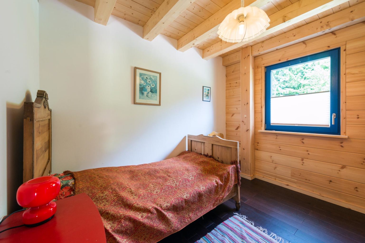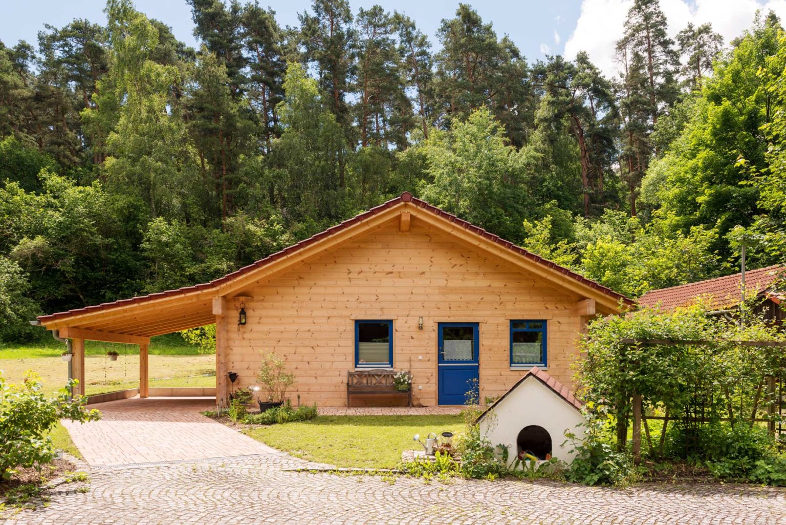 Das eingeschossige Holzhaus verfügt über zwei plane Terrassen, einen ebenerdigen Garten und einen ebenfalls barrierefreien, angebauten Carport. Alle Türen sind breiter als gewöhnlich, damit ein Rollstuhl hindurch passt, und das Badezimmer ist bequem mit Rolli benutzbar. Ein Bekannter der Hauseigentümer, der selbst im Rollstuhl sitzt, hat Holzhaus "Casa Appelt" im Vorfeld eigens auf Rolli-Tauglichkeit durchgecheckt.