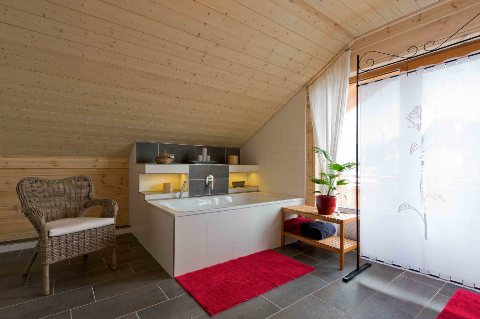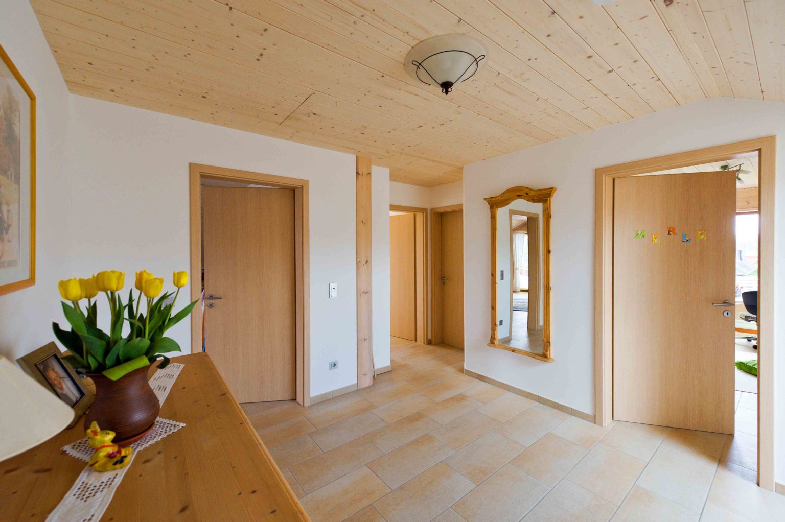 Schon das Anliefern der sehr langen und besonders schweren Fertigwandteile sorgte für großes Spektakel in der Nachbarschaft, erst recht, da hier ein Holzhaus entstehen sollte. Der schwerbeladene LKW hatte seine liebe Not durch die schmalen Sträßchen zu kommen, schaffte es letztlich aber doch. Die Montage des Rohbaus ging dann, dank der zuverlässigen Monteure von Fullwood, ganz schnell und problemlos von Statten – Hausherren und Nachbarn staunten nicht schlecht über den rasenden Baufortschritt. Die Setzungsfreiheit der Wände ermöglichte ein einfaches und fixes Errichten auf dem gemauerten Untergeschoss. Für den Innenausbau wählten die Eigentümer von Holzhaus „an der Bronnenwiese“ dann ortsansässige Fachfirmen, die Ihnen größtenteils von Fullwood empfohlen wurden. Jetzt sind alle, auch die anfangs skeptischen Kinder der Familie, rundum zufrieden in ihrem modernen und gemütlichen Holzhaus von Fullwood und genießen das ganz besonders behagliche und gesunde Wohnklima ihres Heims.