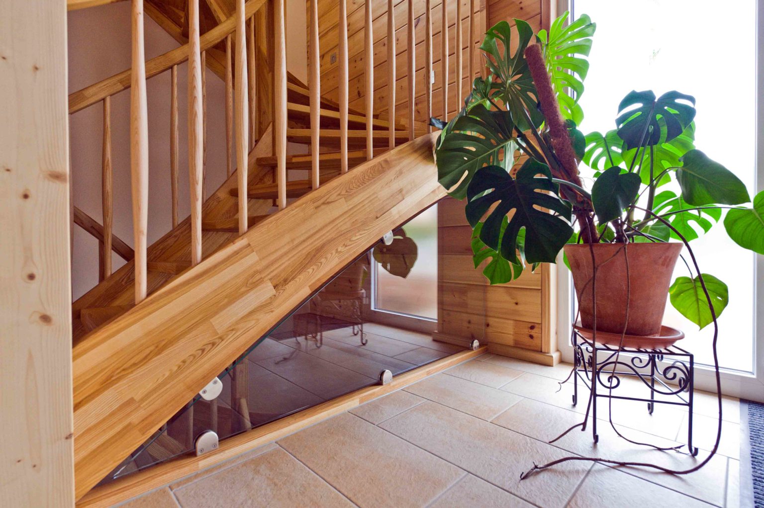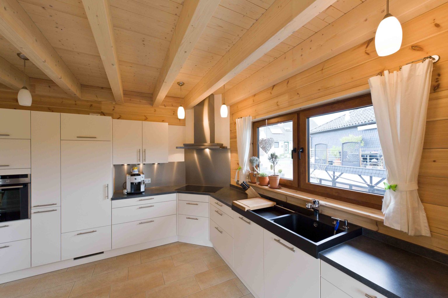 Großzügig ist auch die Weit- und Umsicht der Hauseigentümer in Punkto Ökobilanz und Energieeffizienz: Sie haben sich für ein Holzhaus entschieden, dessen Baustoff schon in der Herstellungsphase, hier sagt man passender „Entstehungsphase“, keine „graue“ Energie verbraucht, sondern sogar etwas für das Klima tut. In der Wachstumsphase entziehen Bäume der Luft Kohlendioxyd, welches sie als Kohlenstoff speichern, und dieser Speichervorgang hält auch noch im verbauten Zustand an. Später, bei der Herstellung der Wände und dem Transport derselben, wird vergleichsweise wenig Energie verbraucht. Alles in allem fängt die Energieeffizienz eines Holzhauses von Fullwood schon bei der Herstellung an und setzt sich beim Wohnen weiter fort.